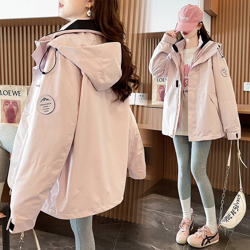 粉色户外冲锋衣外套三合一可拆卸