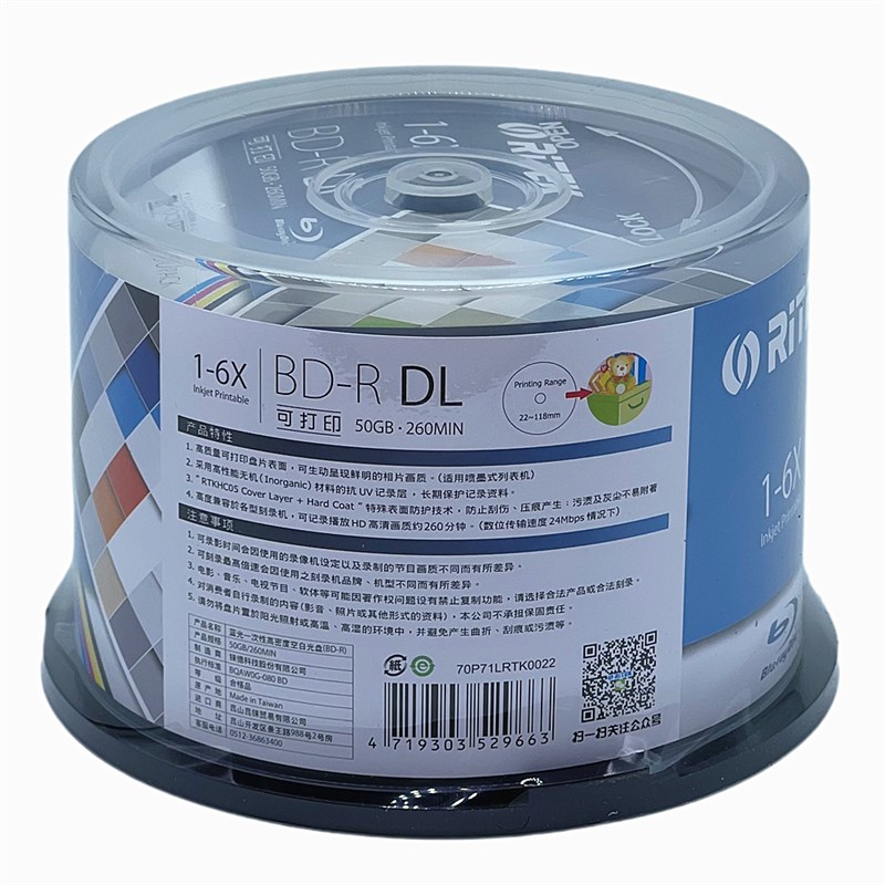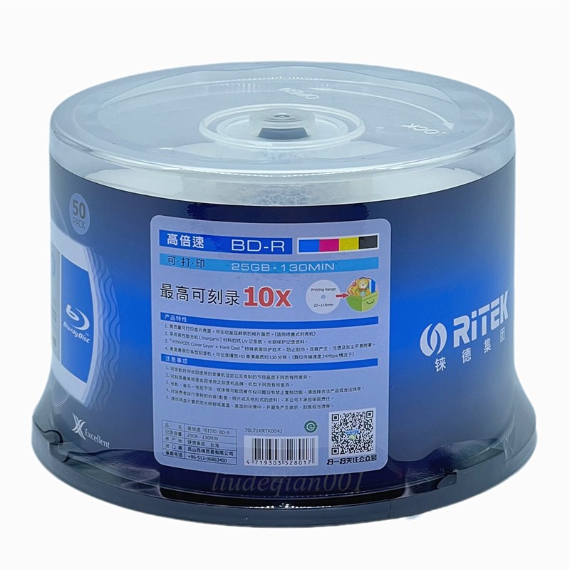 正品RiTEK/铼德BD-R 25G 50G空白蓝光刻录盘 桶装 可打印光盘光碟