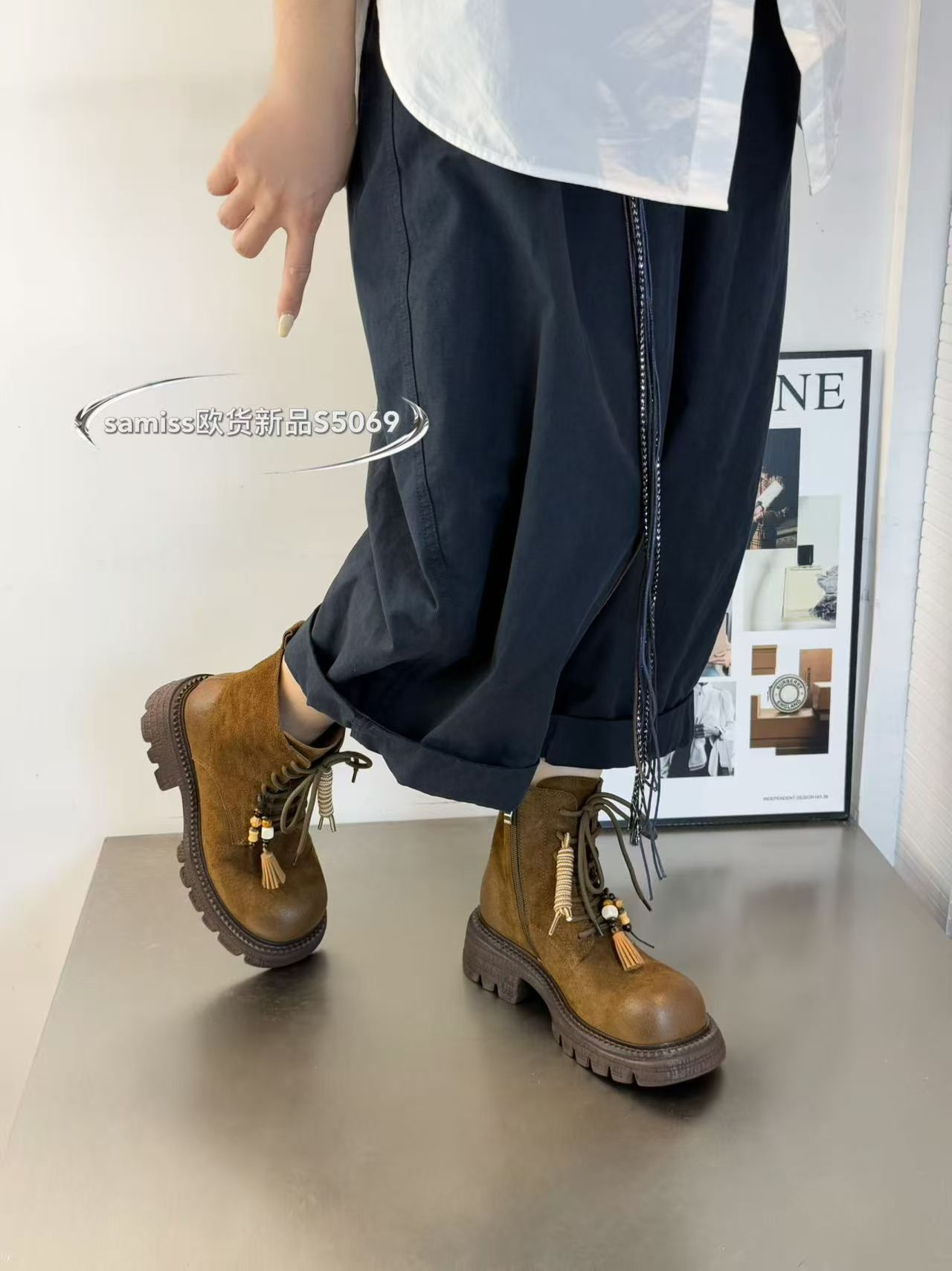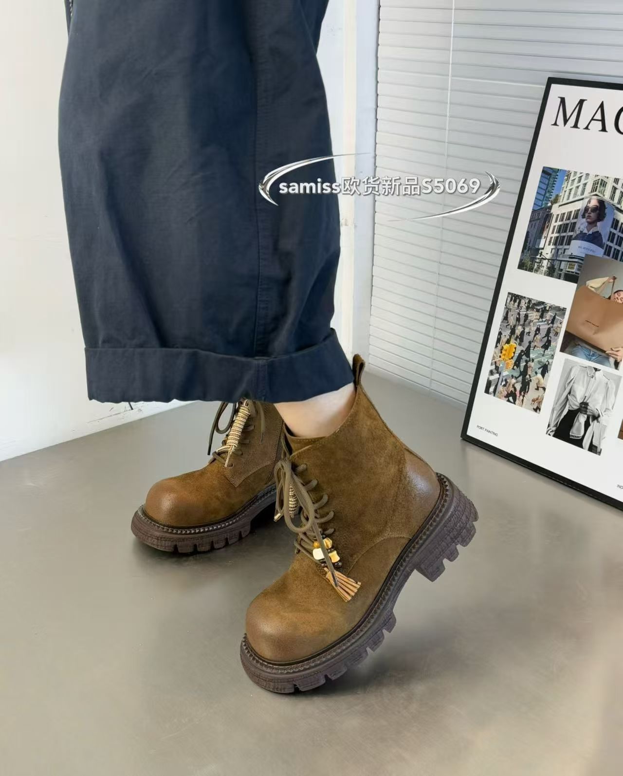 欧洲站2025新款真皮女鞋休闲舒适圆头厚底增高马丁靴时尚百搭短靴