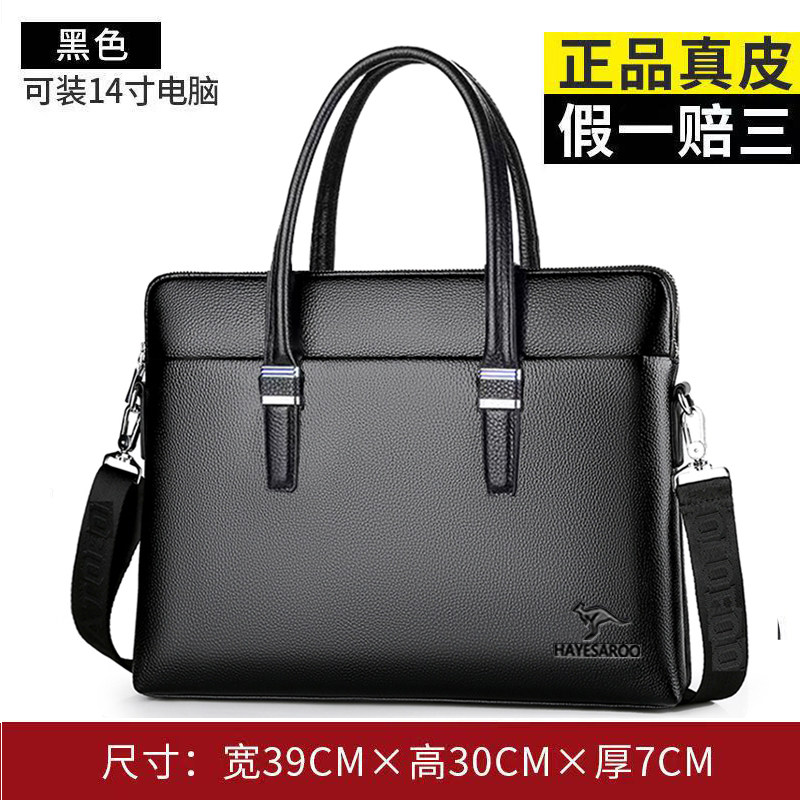 哈克文袋鼠牛皮男包手提包男士真皮公文包单肩包斜挎包商务电脑包