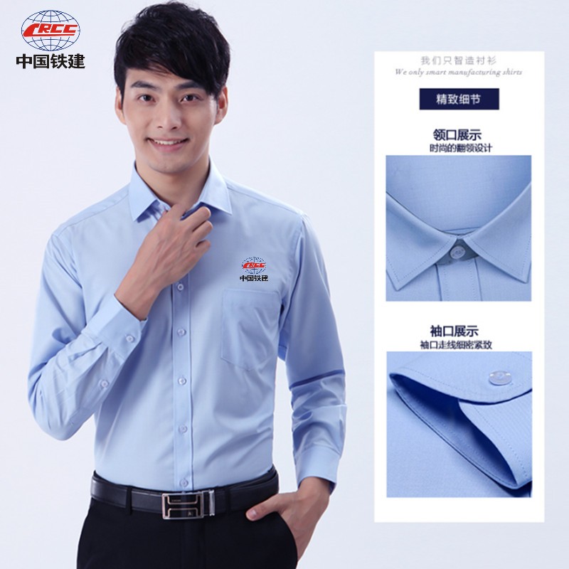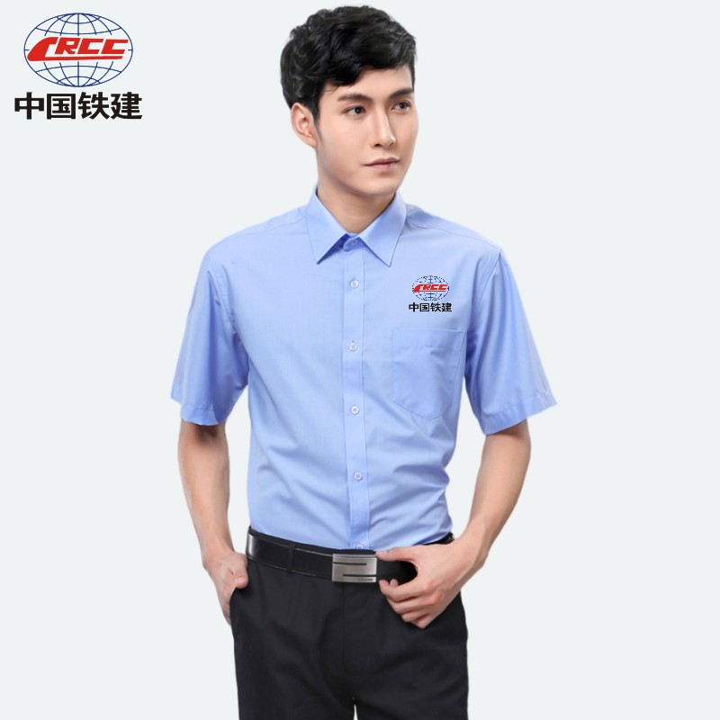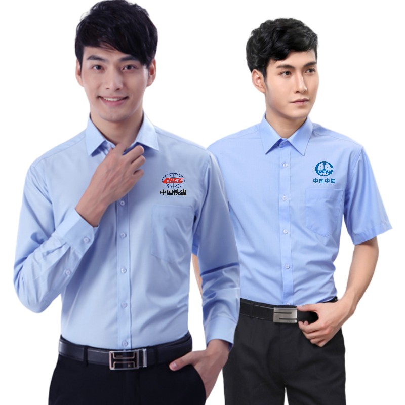 中国铁建工作服蓝色衬衫中铁系统工装男女长短袖职业装棉衬衣定制