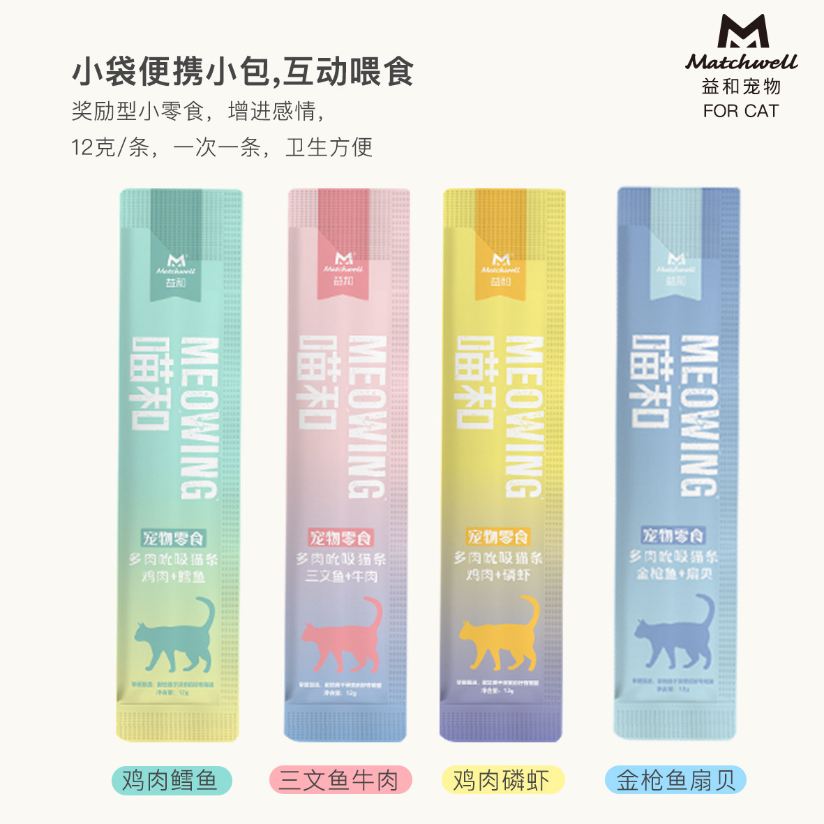 益和喵和猫条鸡肉磷虾鳕鱼三文鱼金枪鱼湿粮包猫咪零食成幼猫通用
