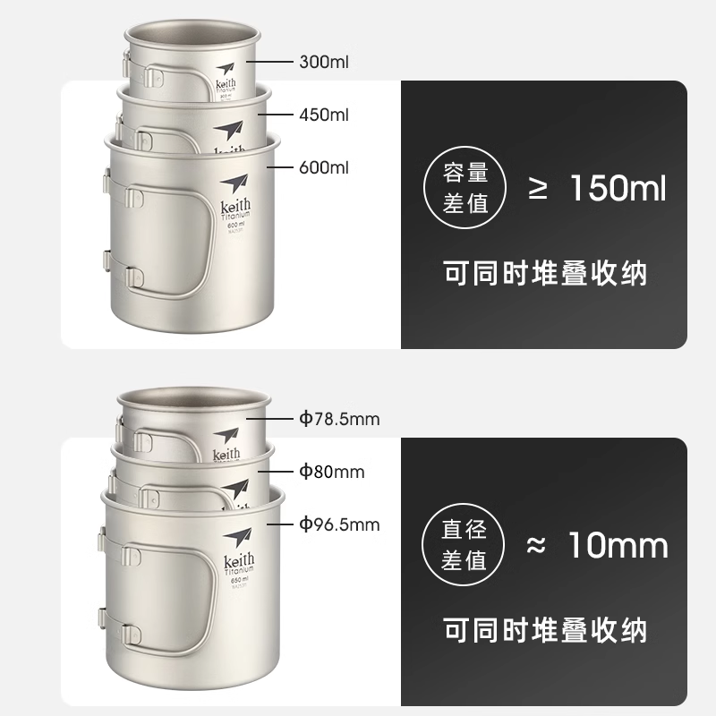 keith铠斯钛杯户外纯钛水杯咖啡杯折叠露营便携野餐杯子茶杯宽口