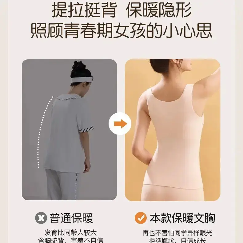 2件装】发育期少女内衣青少年秋冬保暖背心初高中学生加绒打底衣