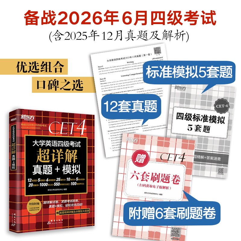 新东方 【备考2026年6月】大学英语四六级考试超详解真题+模拟试卷 超详解 刷题卷答题卡 多题多卷翻译写作听力阅读 博库网