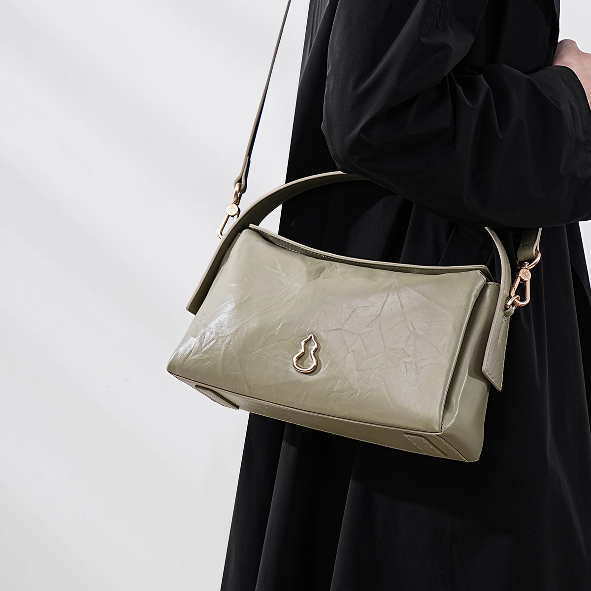 宣璐同款 BAMPO半坡飞檐包 头层牛皮枕头包新款单肩斜挎hobo包女