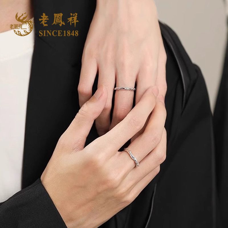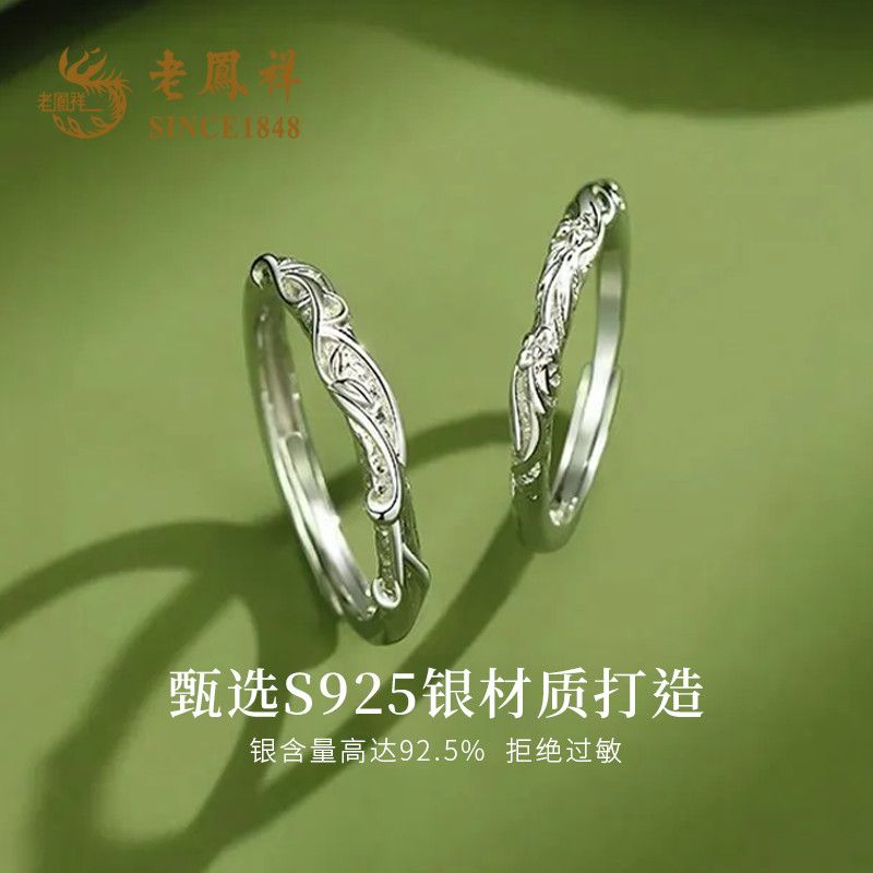 老凤祥925银唐草情侣简约戒指表白求婚对戒中秋情人节浪漫礼物