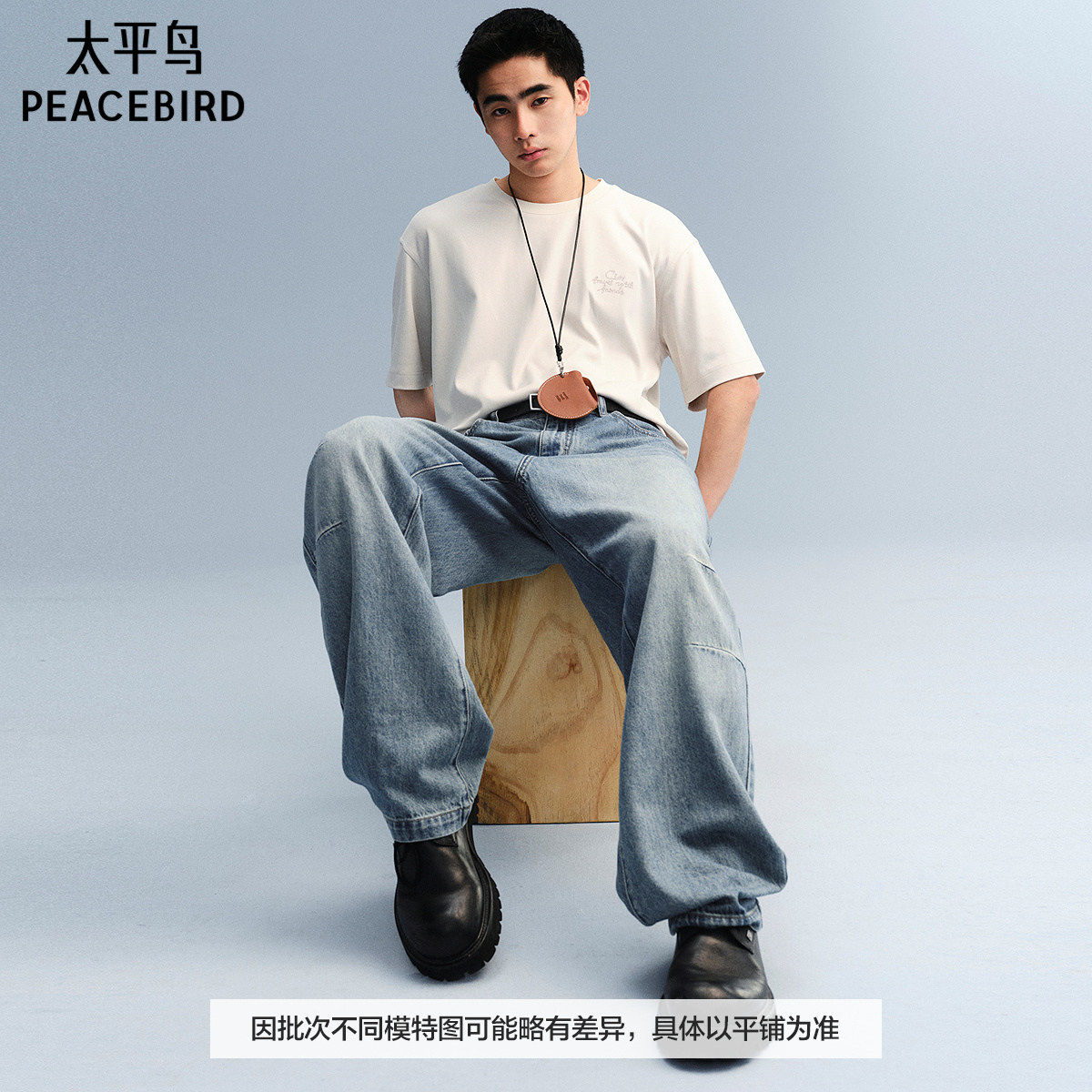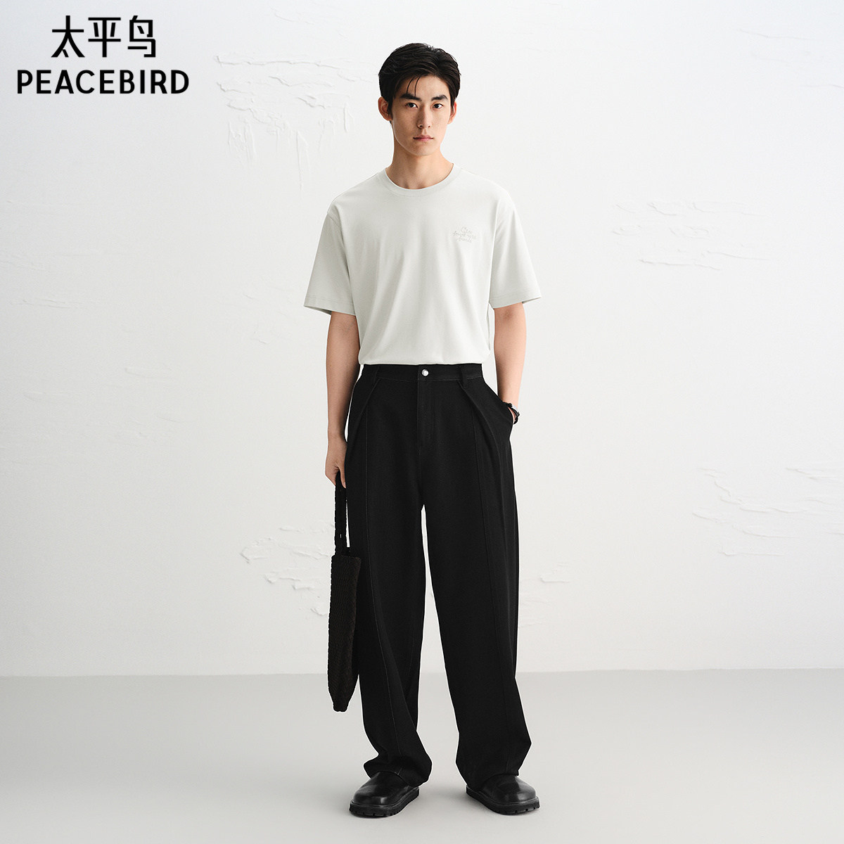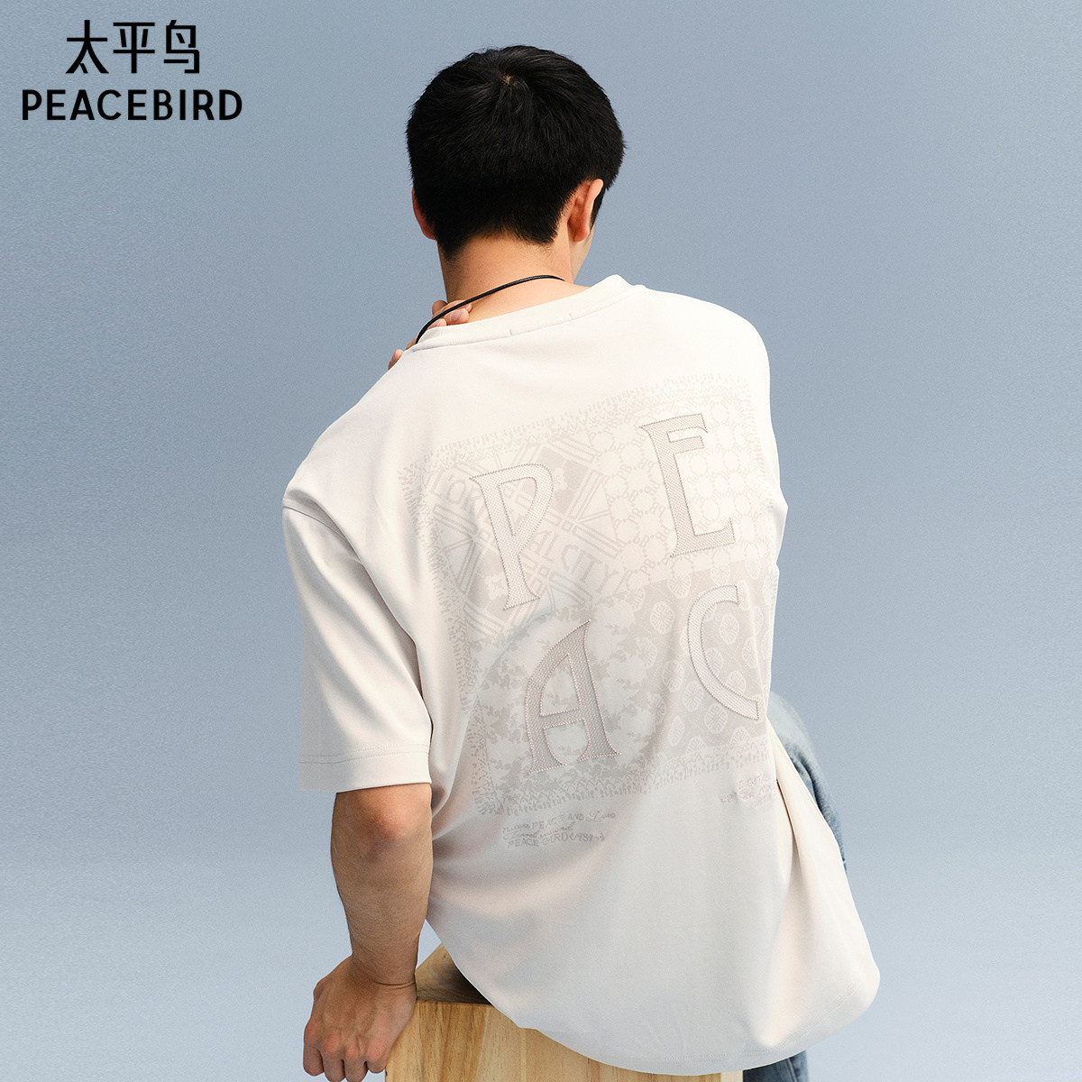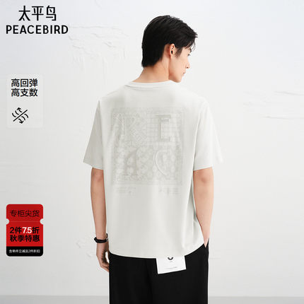 【商场同款】太平鸟男装 美式刺绣休闲白色圆领短袖T恤B1CNF3115