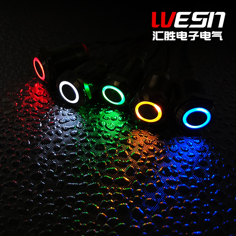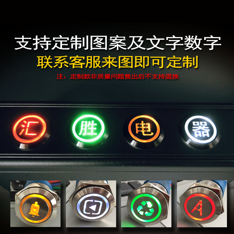 金属按钮16/19/22MM自复位点动圆形开关自锁带灯电源启动防水改装