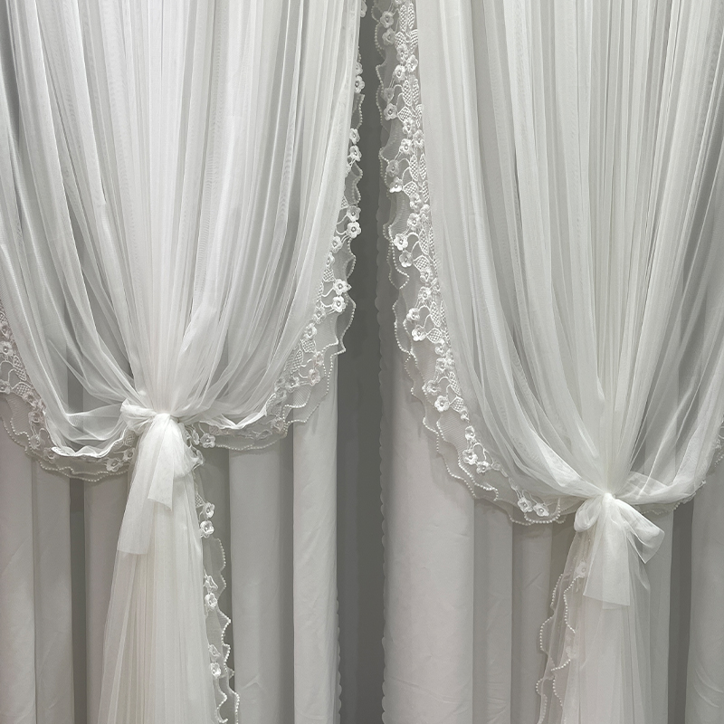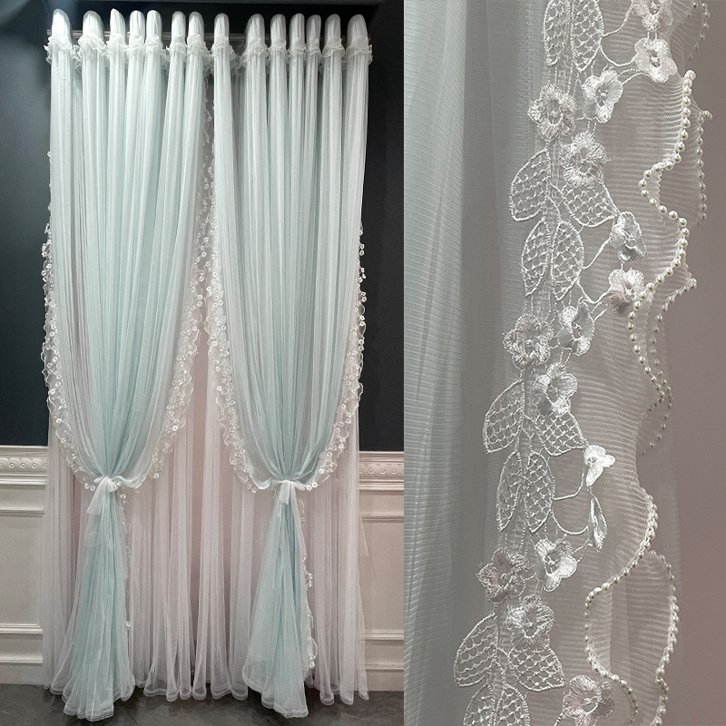 客厅透光不透人双层蕾丝花边纱帘