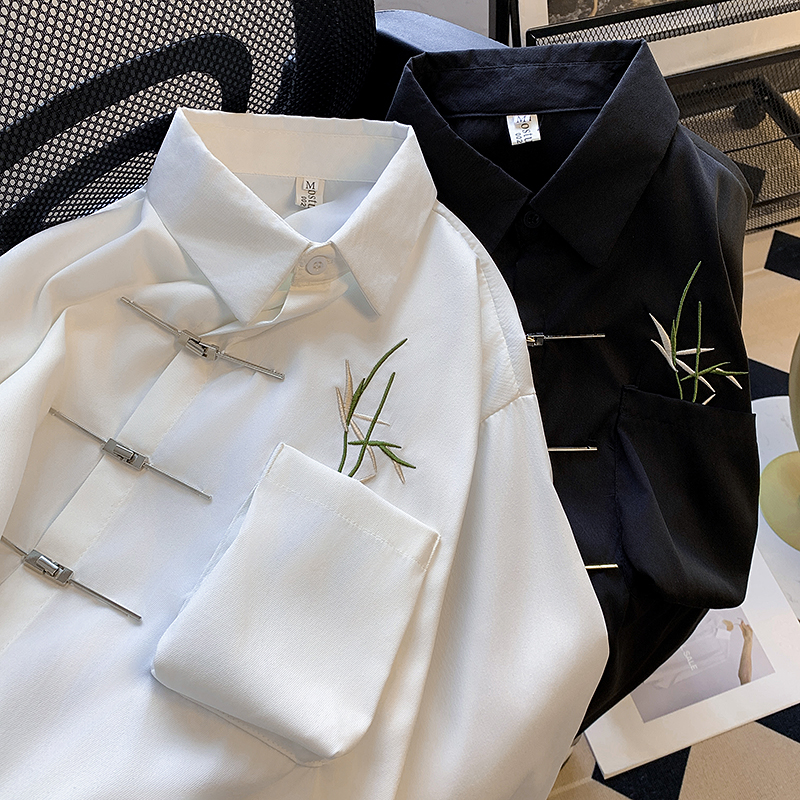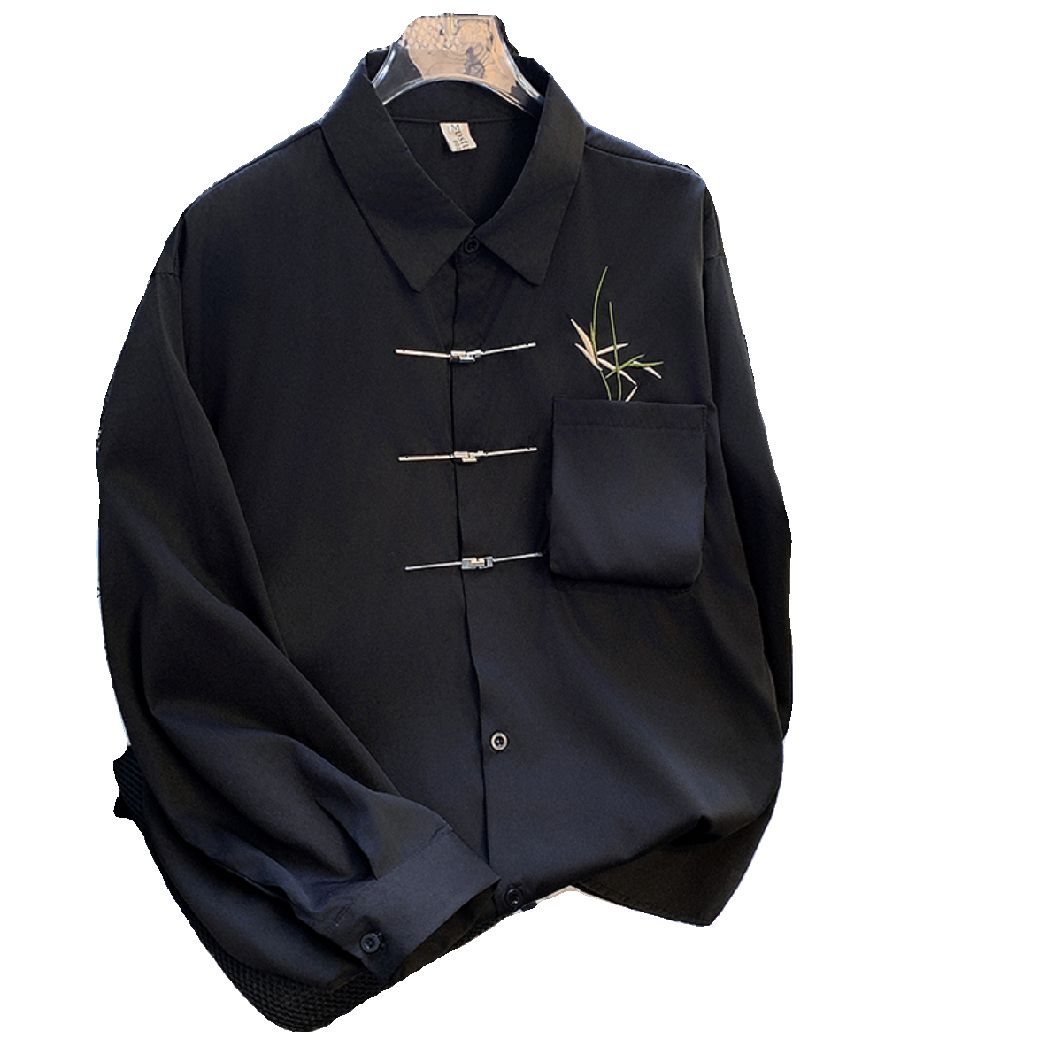 国风设计感休闲衬衣男士秋季新中式长袖衬衫宽松潮流痞帅唐装外套