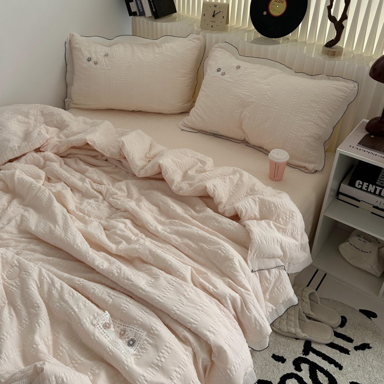奶油少女粉慵懒泡芙花边夏凉被四件套夏季空调被三件套单件夏凉被