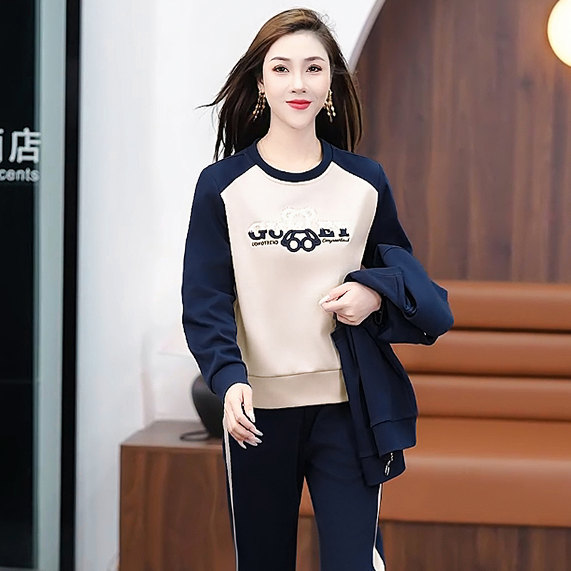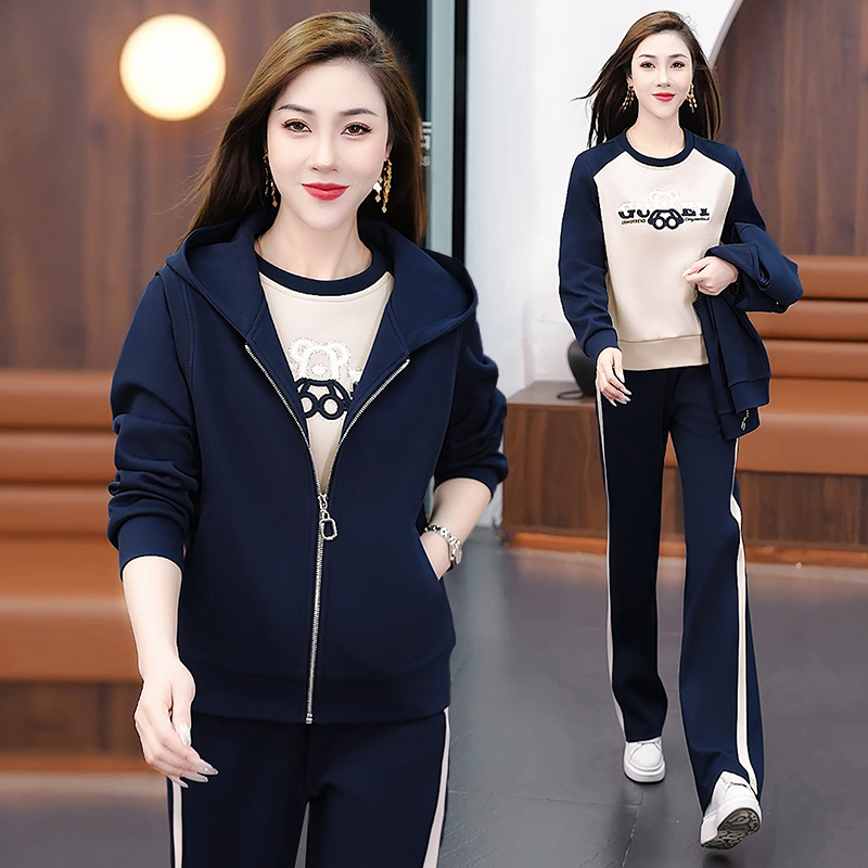 休闲运动套装女春季时尚洋气减龄高端连帽卫衣直简裤跑步服三件套