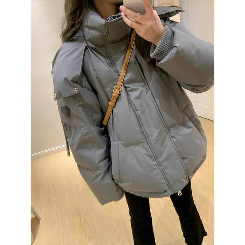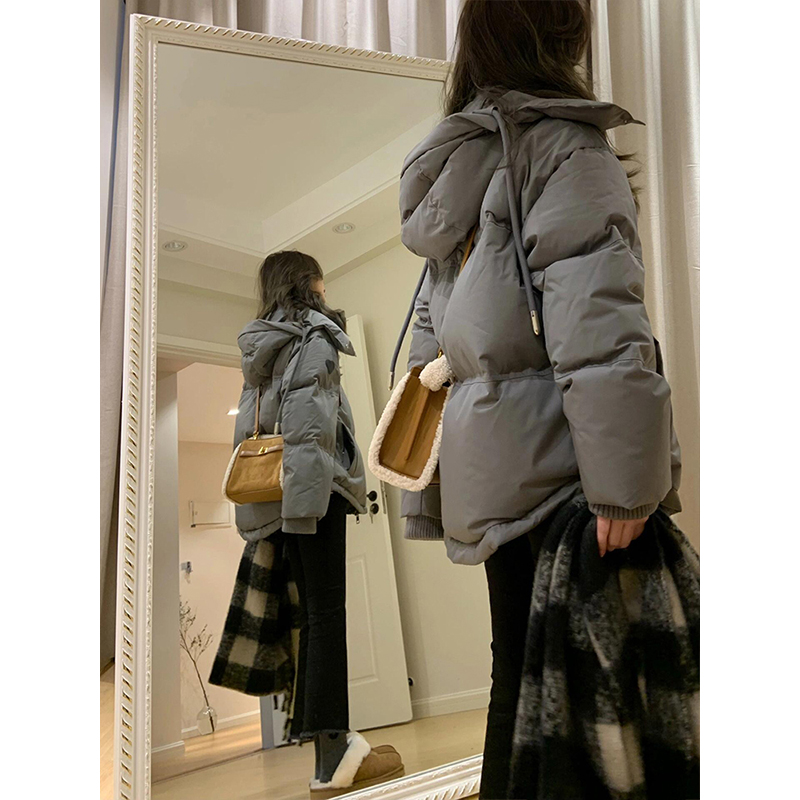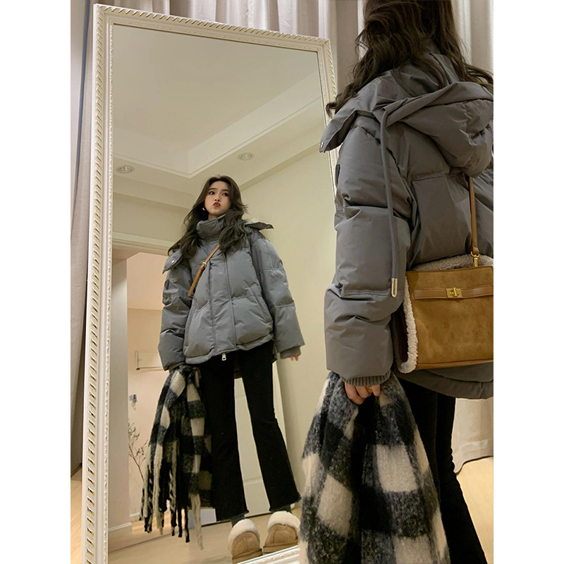 300斤大码胖mm美式灰色棉服女冬季新款加厚减龄学生连帽棉衣外套