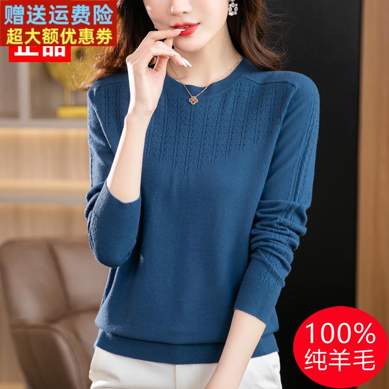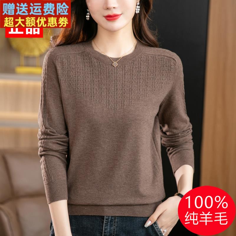 2025春季新款妈妈薄款毛衣女圆领套头羊毛打底衫100%纯羊绒针织衫