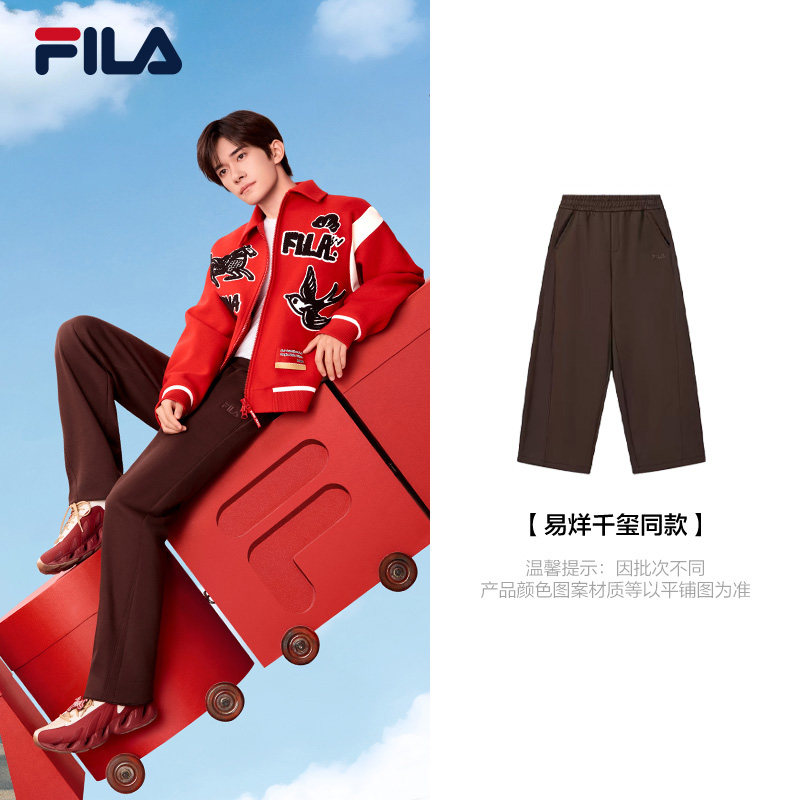 易烊千玺同款FILA斐乐官方男士针织长裤2026春新款加绒弯刀运动裤