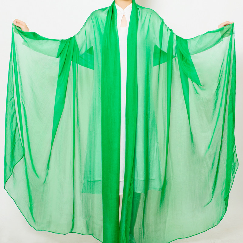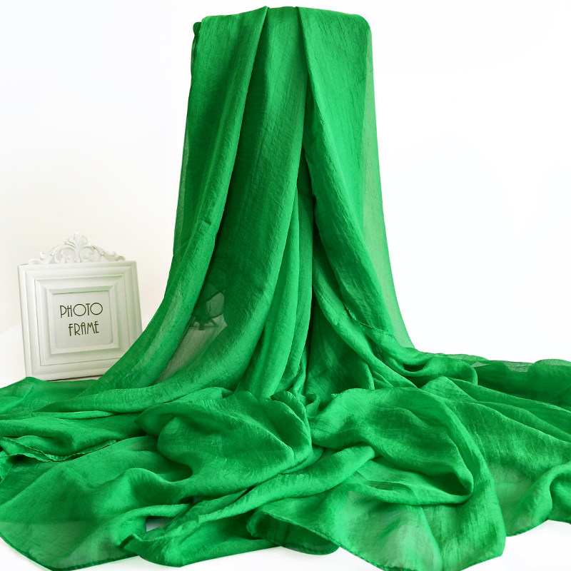 绿色丝巾女夏季防晒果绿纱巾超大雪纺沙滩巾头巾秋冬保暖围巾披肩