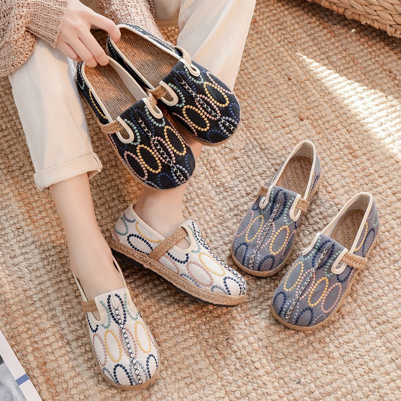 创意老北京布鞋女平底亚麻透气