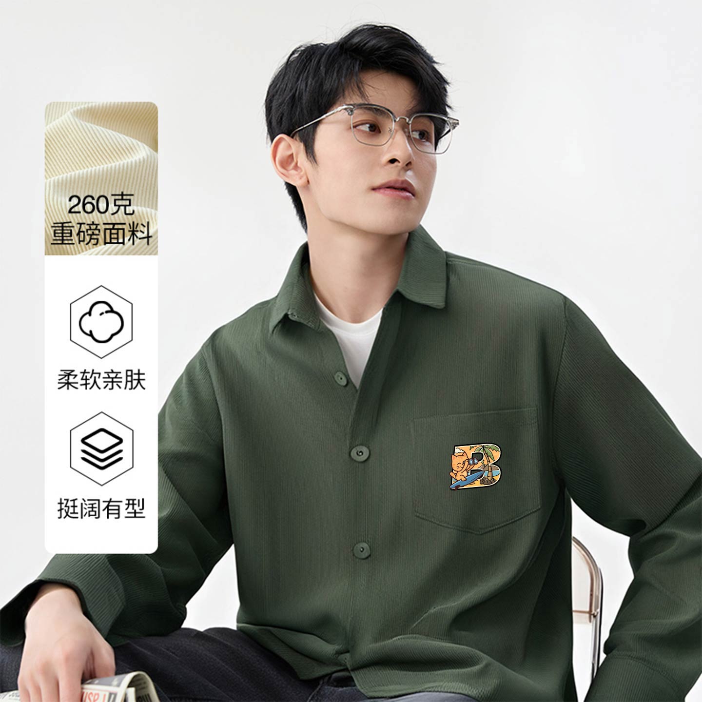 班尼路S&K系列男士休闲外套男款长重磅秋季休闲翻领灯芯绒衬衫LF