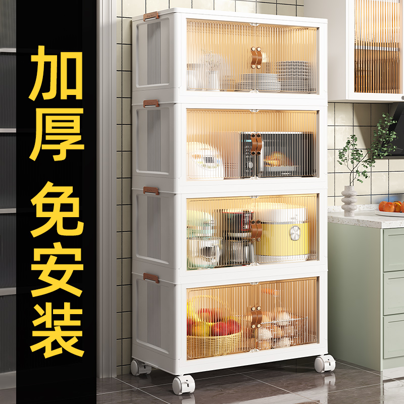 厨房置物架多功能折叠收纳柜免安装落地置物架家用橱柜多层储物柜