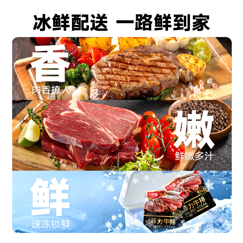 【20片】天海藏儿童菲力牛排 新鲜整切牛排家庭牛排黑椒牛扒牛肉