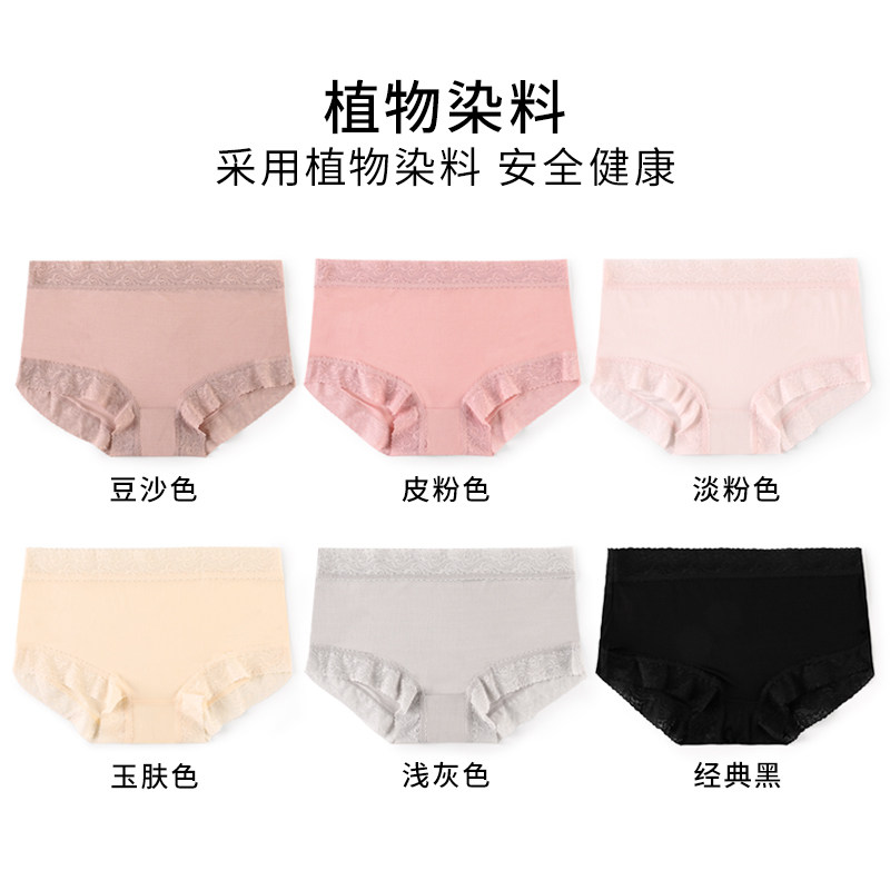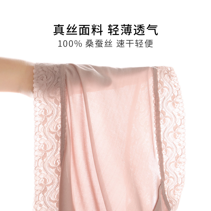 3条100%桑蚕丝真丝内裤女中腰夏季薄款透气蕾丝无痕包臀平角短裤