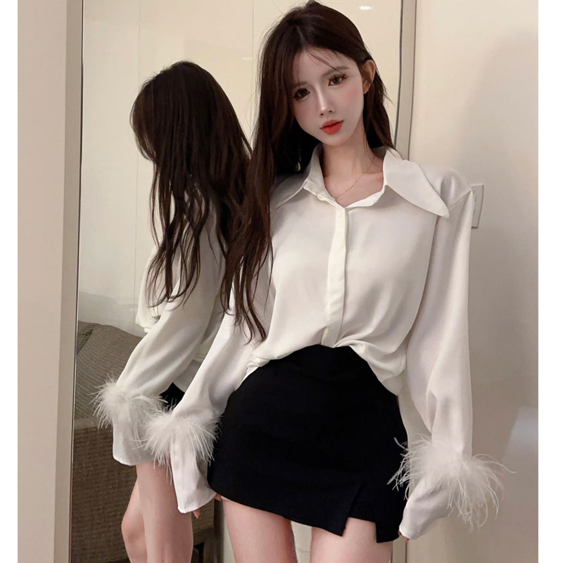 高端性感别致白色醋酸缎面丝滑衬衫女秋季高级感长袖上衣宽松衬衣