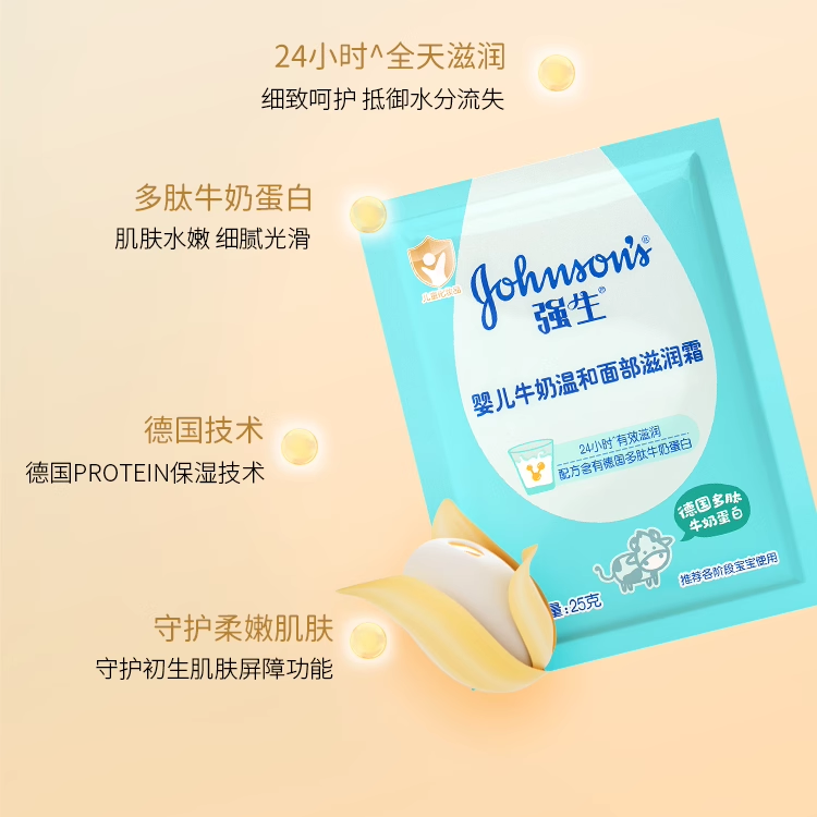 强生婴儿面霜袋装牛奶25g*12袋儿童滋倍润肤蜂蜜清润保湿宝宝面霜