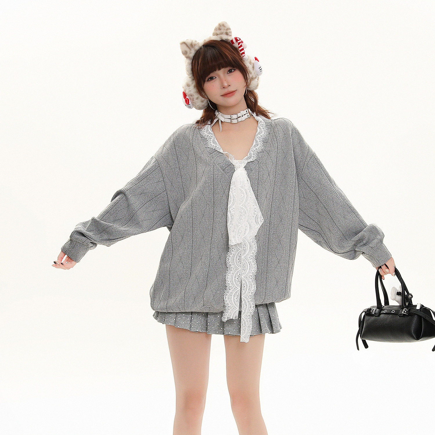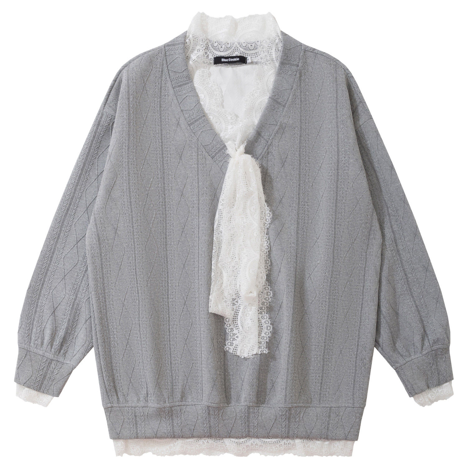 卟噜饼干 干甜美蕾丝拼接温柔系宽松卫衣女2025秋慵懒风休闲 宽松