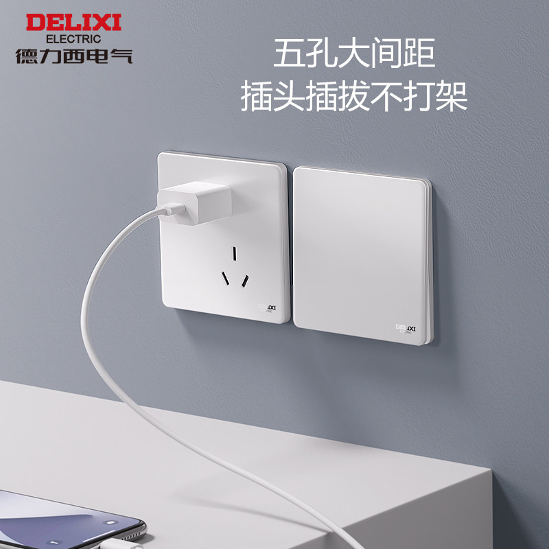 德力西超薄开关插座面板奶油风一开五孔带开关家用多孔双控290白