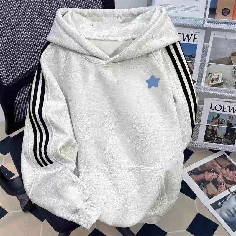 300斤加大码美式重磅三条杠连帽卫衣男女情侣春秋款宽松上衣外套