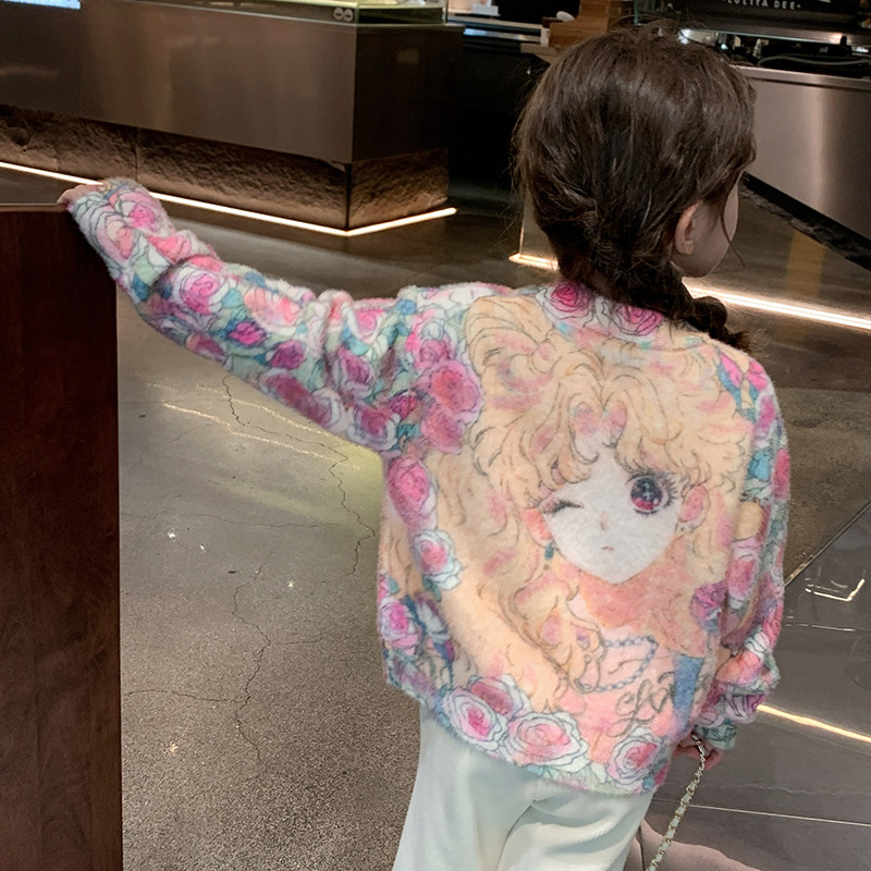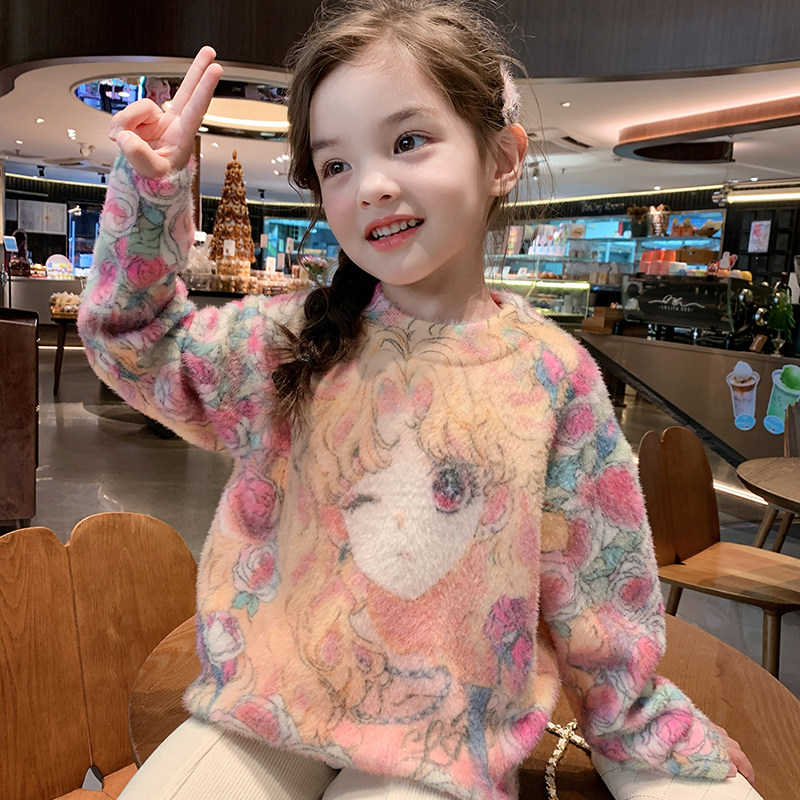 女童毛衣洋气儿童网红水貂绒针织衫冬装2025新款女孩韩版休闲上衣