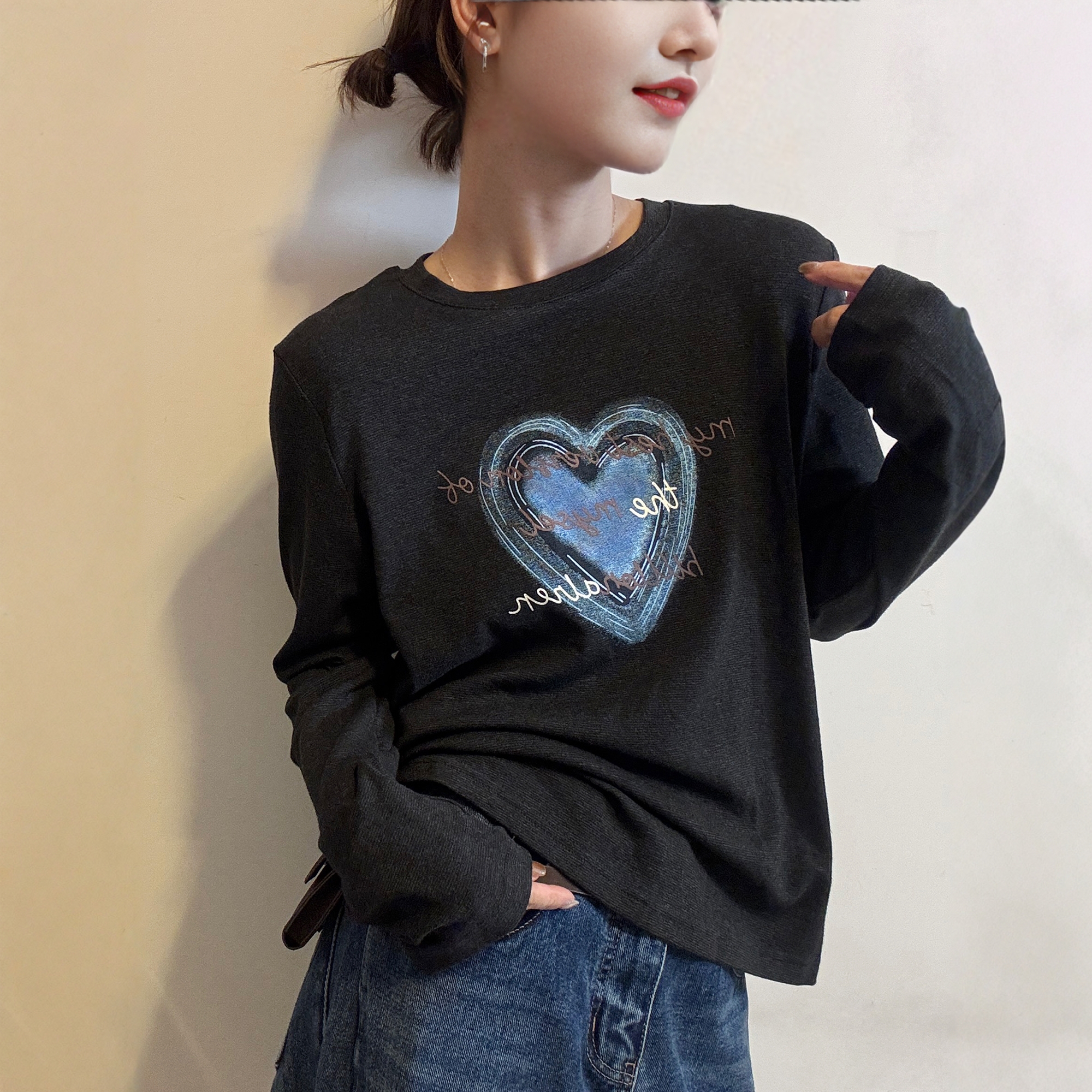 爱心字母印花长袖T恤女欧洲站2025秋装新款欧货女装时尚打底衫潮
