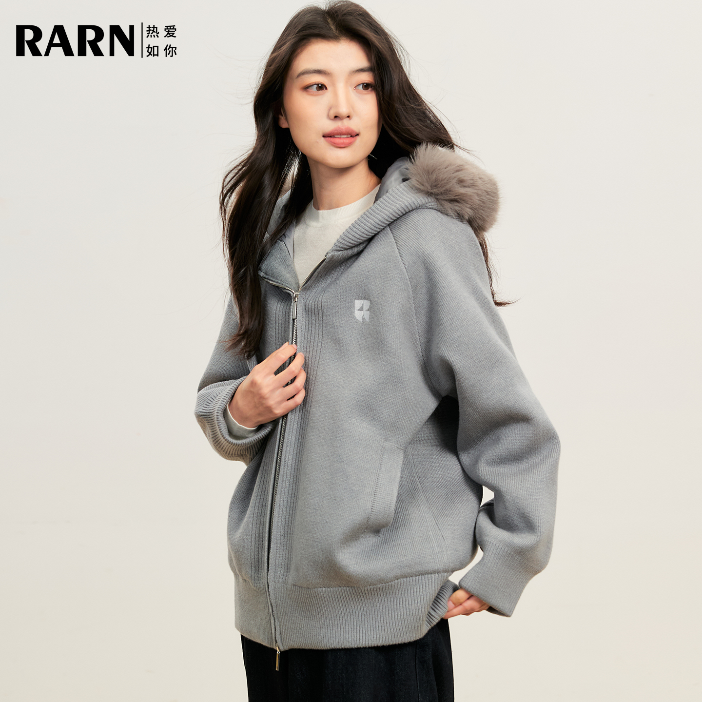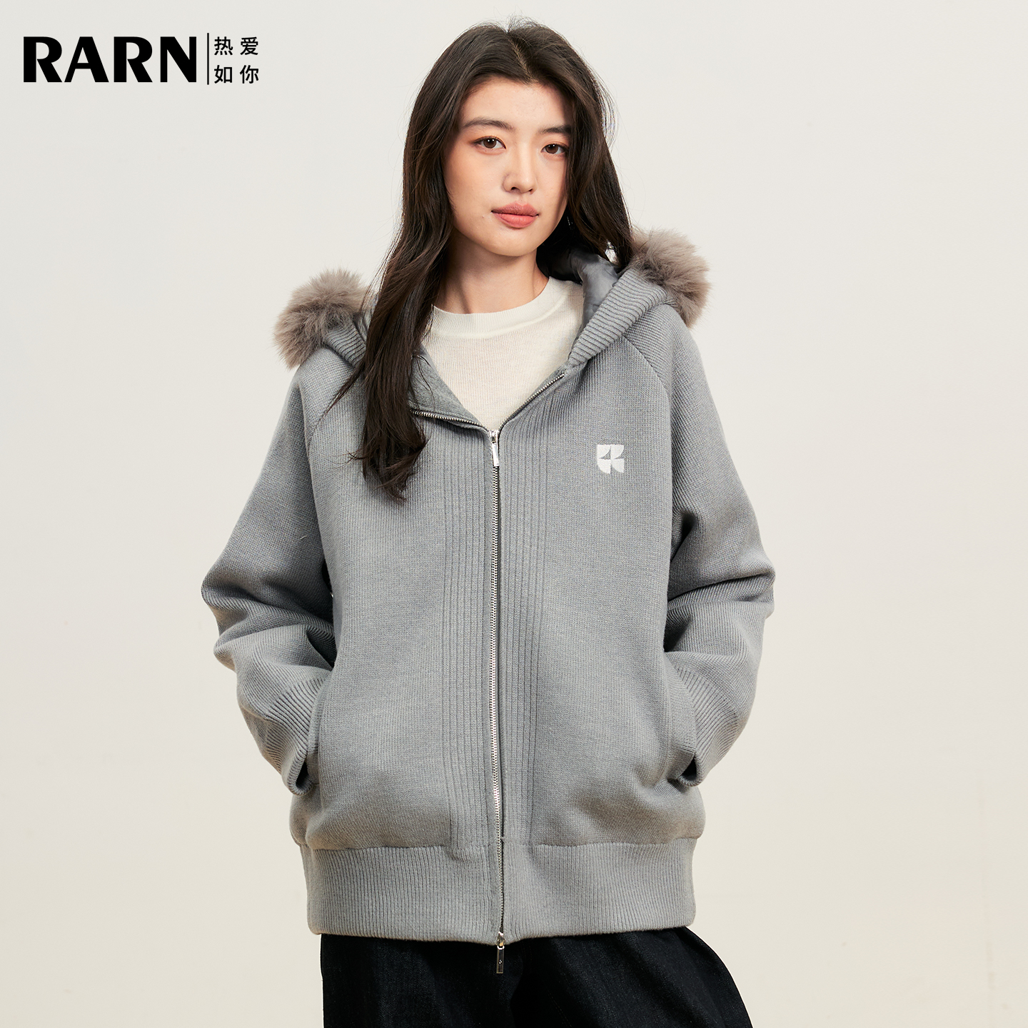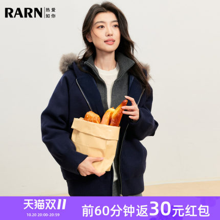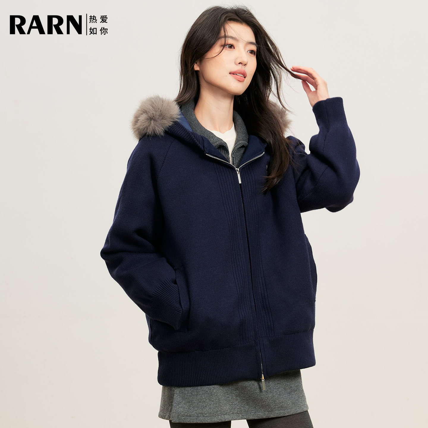 RARN热爱如你2025冬装新款毛领针织羽绒服女加厚90白鸭绒连帽外套