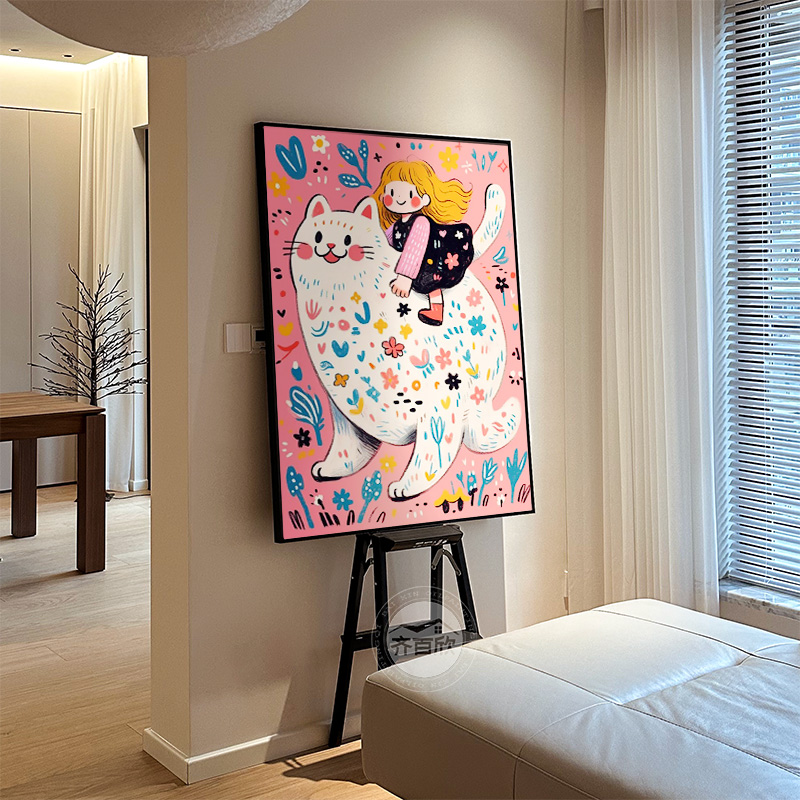 现代简约风卡通可爱女孩卧室装饰画儿童房床头挂画温馨客餐厅壁画