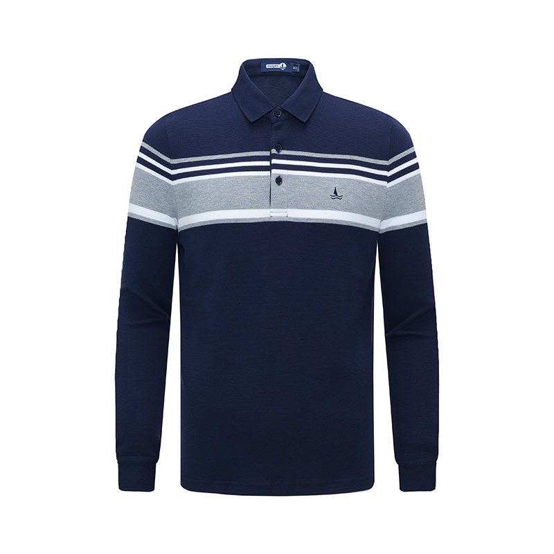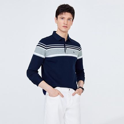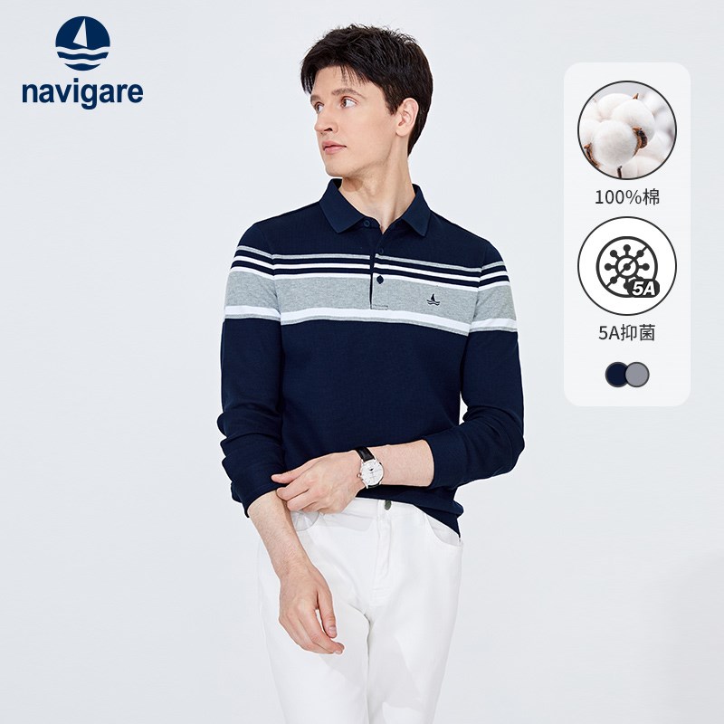 [纯棉]Navigare意大利小帆船秋季条纹polo衫男长袖休闲翻领t恤
