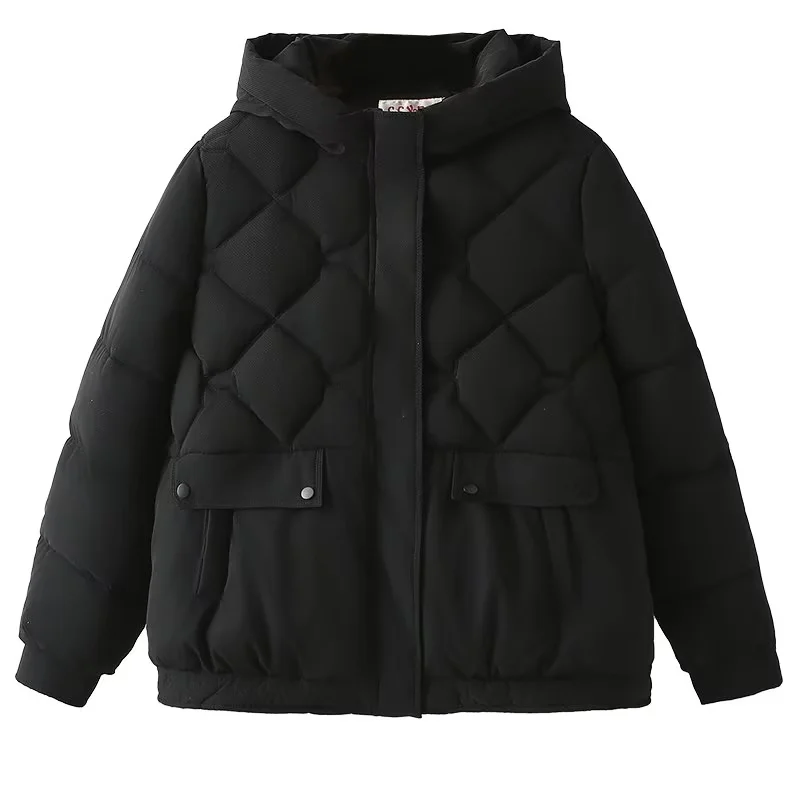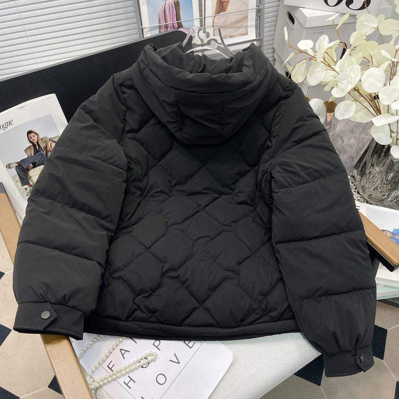 胡子叔大码女装胖mm连帽羽绒棉服冬季韩版黑色高级感夹棉短棉衣潮