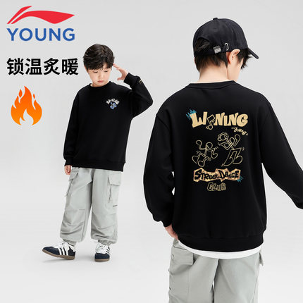 李宁儿童加绒卫衣保暖圆领上衣