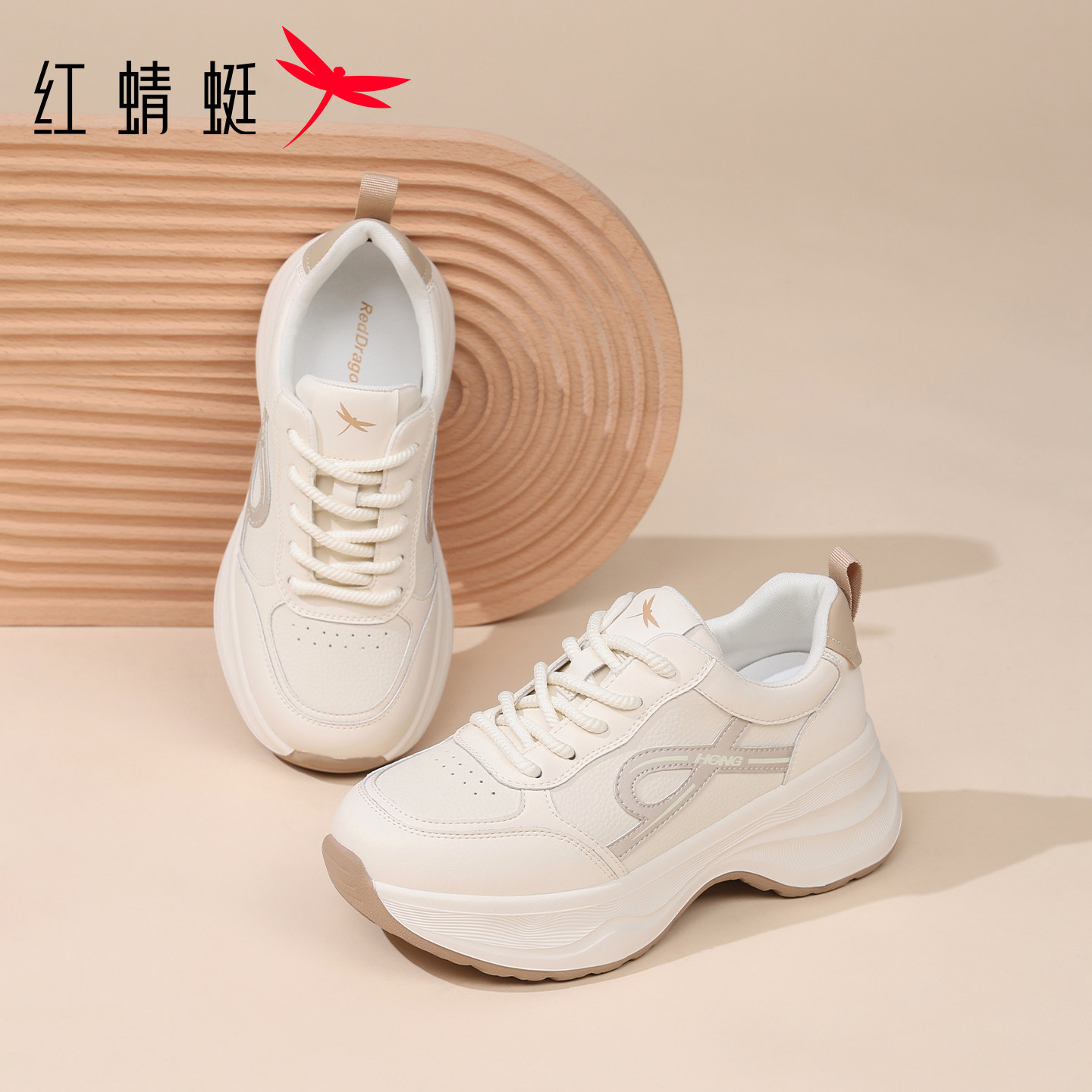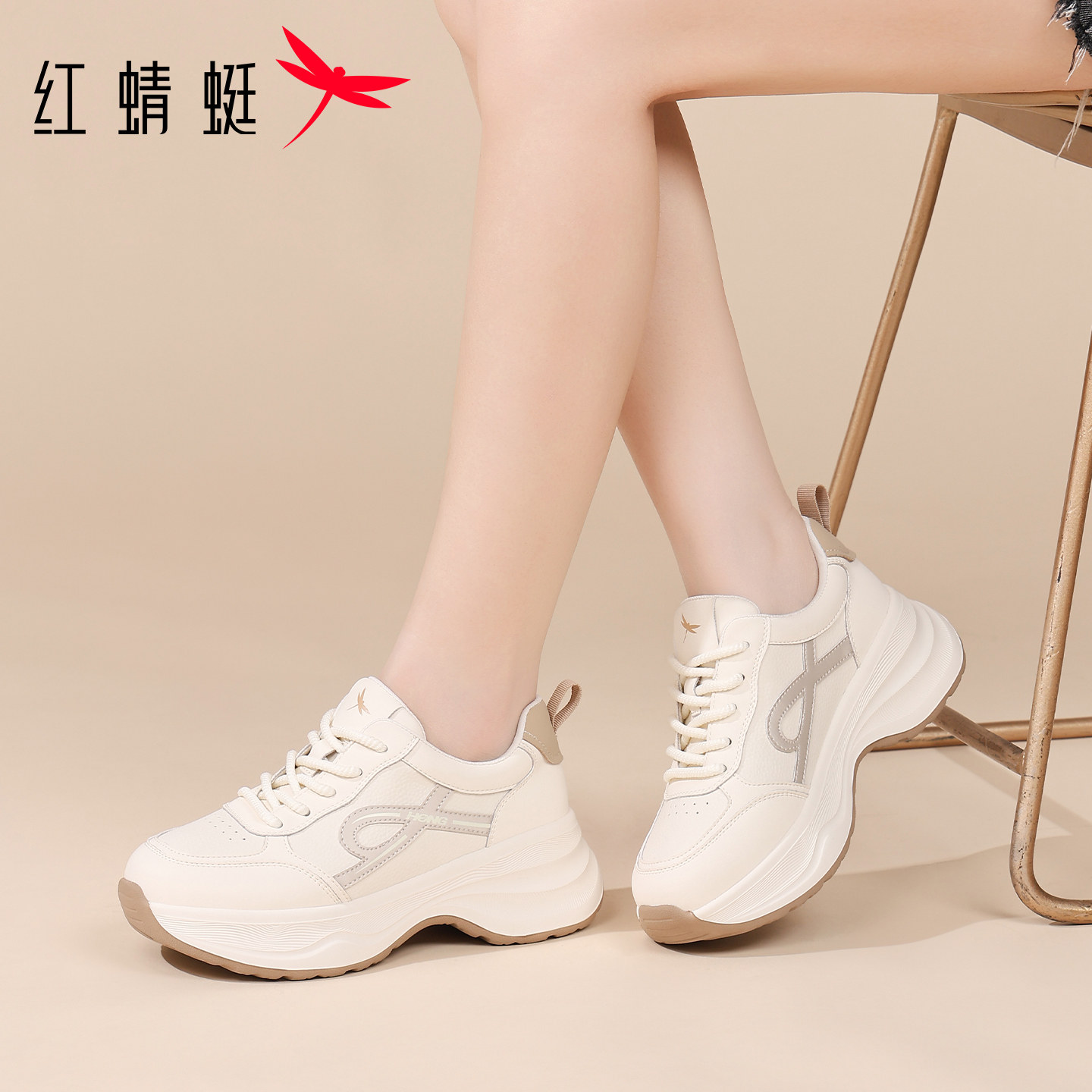 红蜻蜓女鞋2025冬季新款厚底增高加绒保暖休闲老爹鞋大码运动鞋女