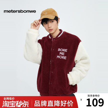 美特斯邦威棒球服夹克男秋冬仿羊羔绒哥特字母拼接青春休闲风外套