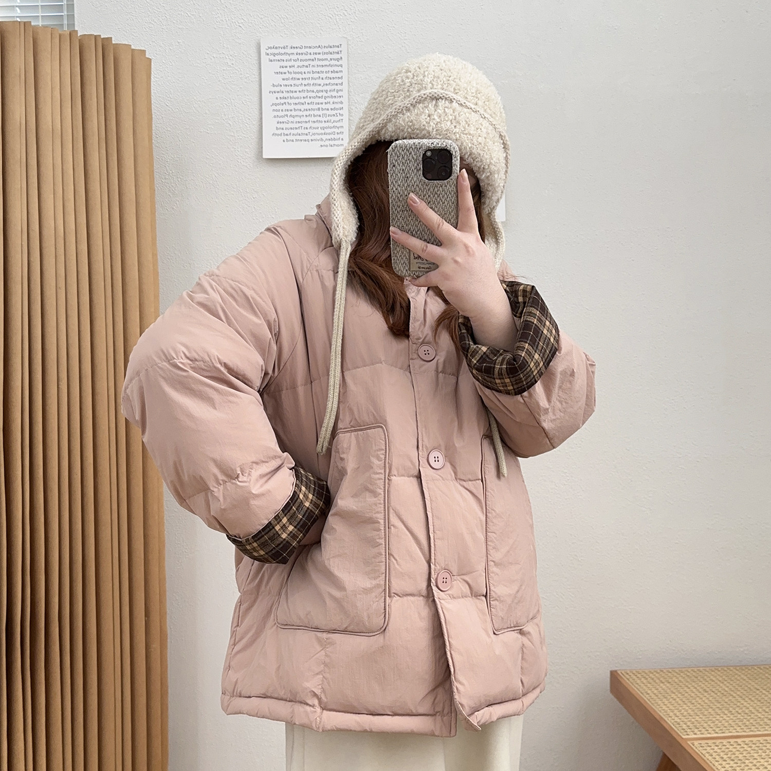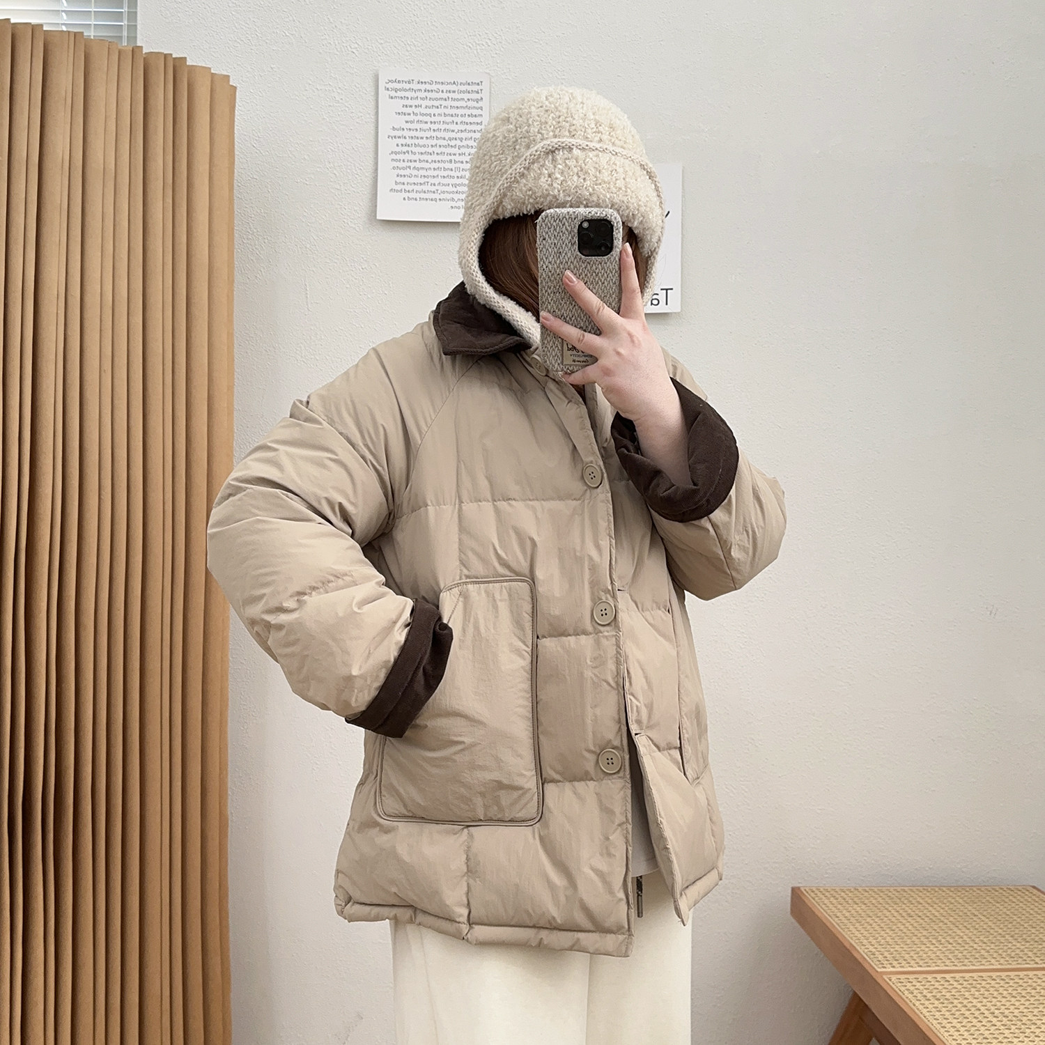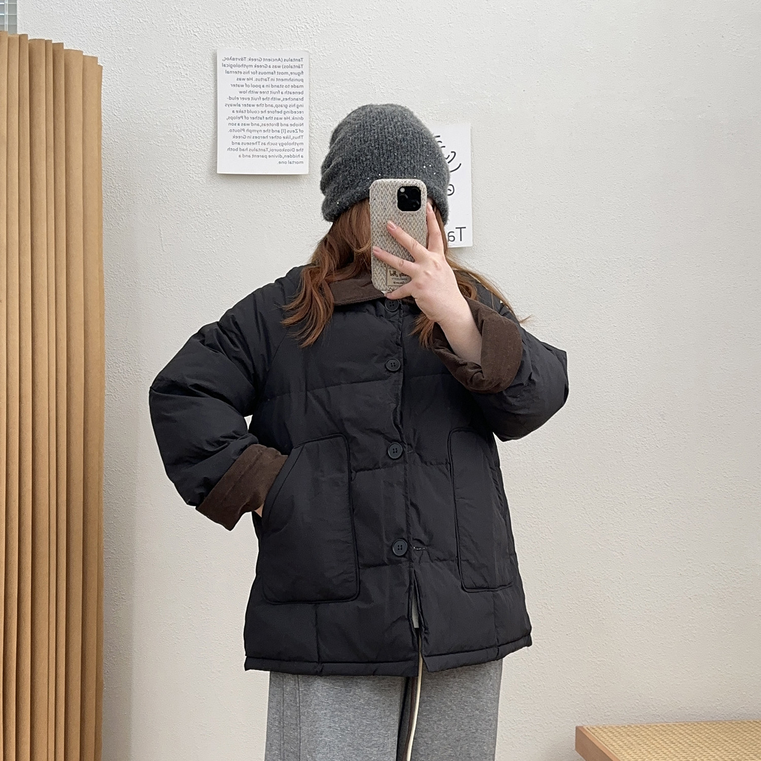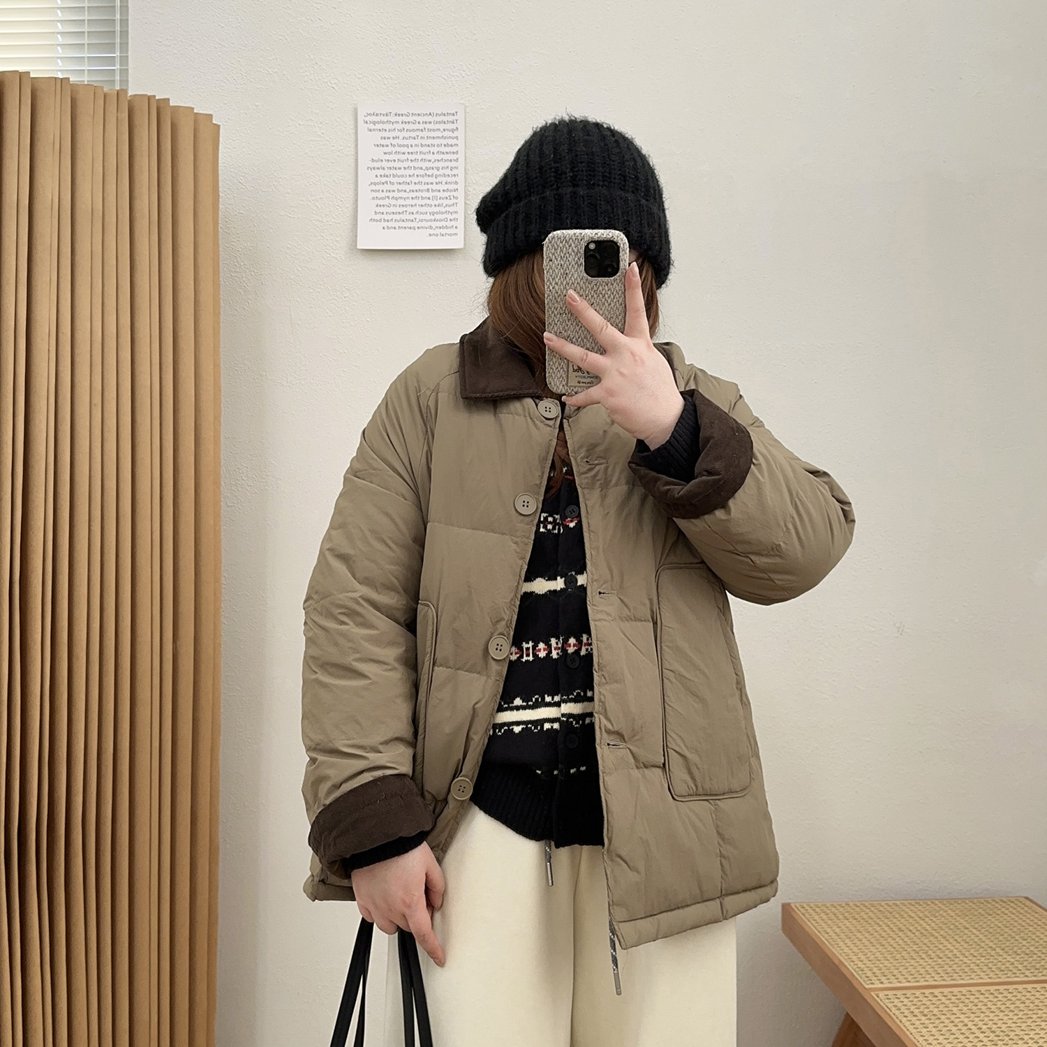 宛宛大码女复古撞色白鸭绒正肩羽绒服新款冬季翻领微胖mm宽松外套