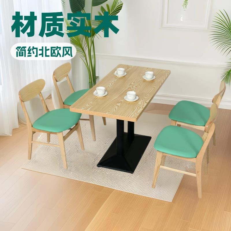 现代北欧奶茶店咖啡厅桌椅组合商用连锁店餐厅实木桌椅食堂餐桌椅