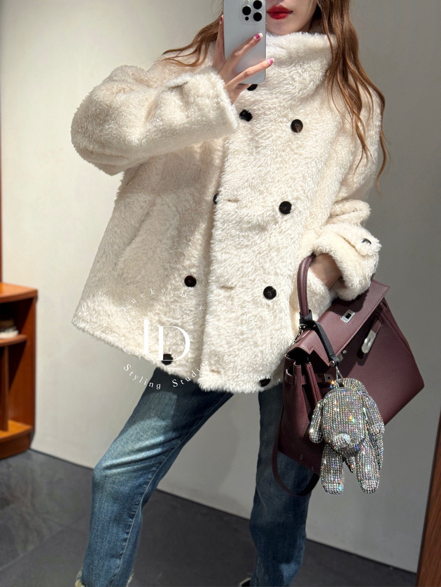 非实价2025冬季新款欧洲站潮牌简约轻奢百搭宽松休闲皮毛一体外套