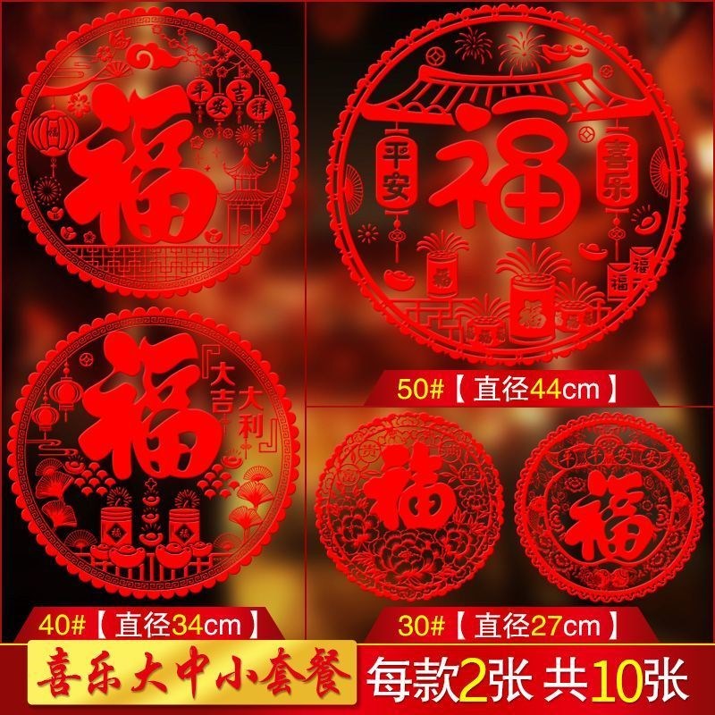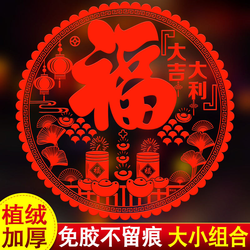 2024龙年新年植绒静电窗花纸玻璃贴乔迁之喜装饰新居大号福字门贴