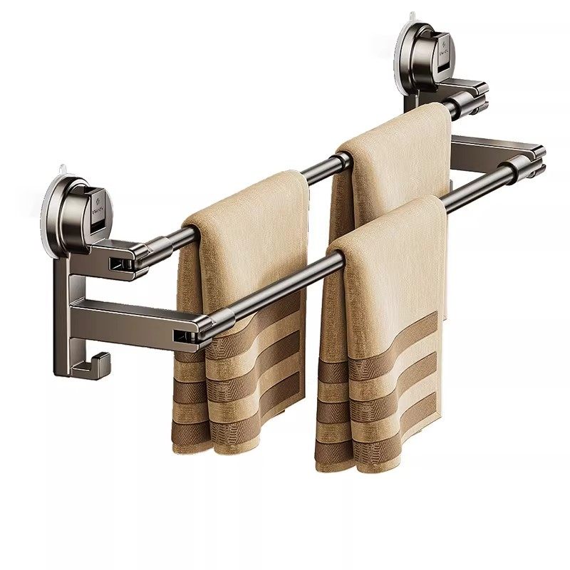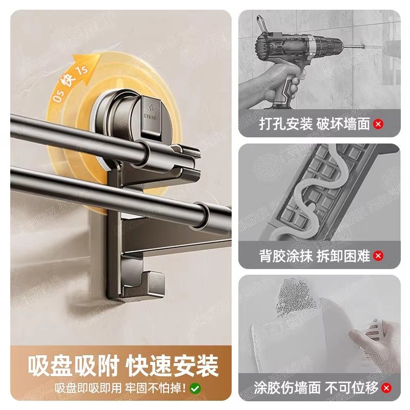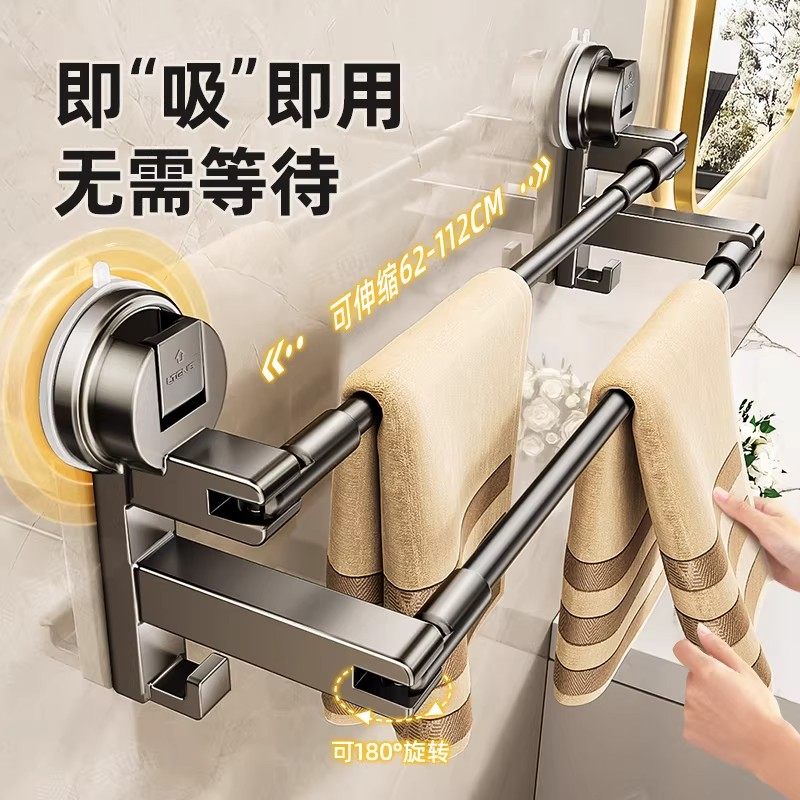 毛巾架卫生间免打孔置物架吸盘式墙上收纳架厕所浴室双挂杆毛巾架