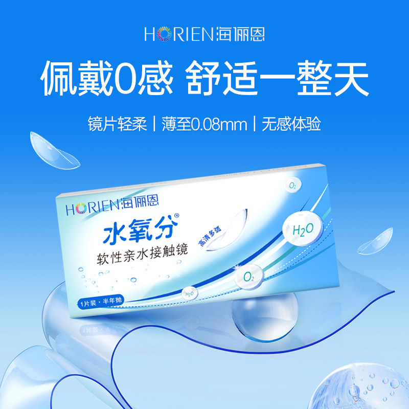 海俪恩半年抛 隐形眼镜水凝胶单片 水氧分海昌近视透明隐形眼镜