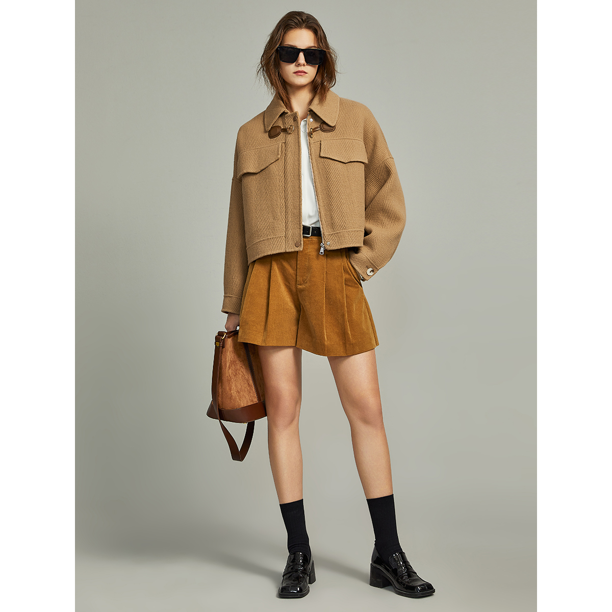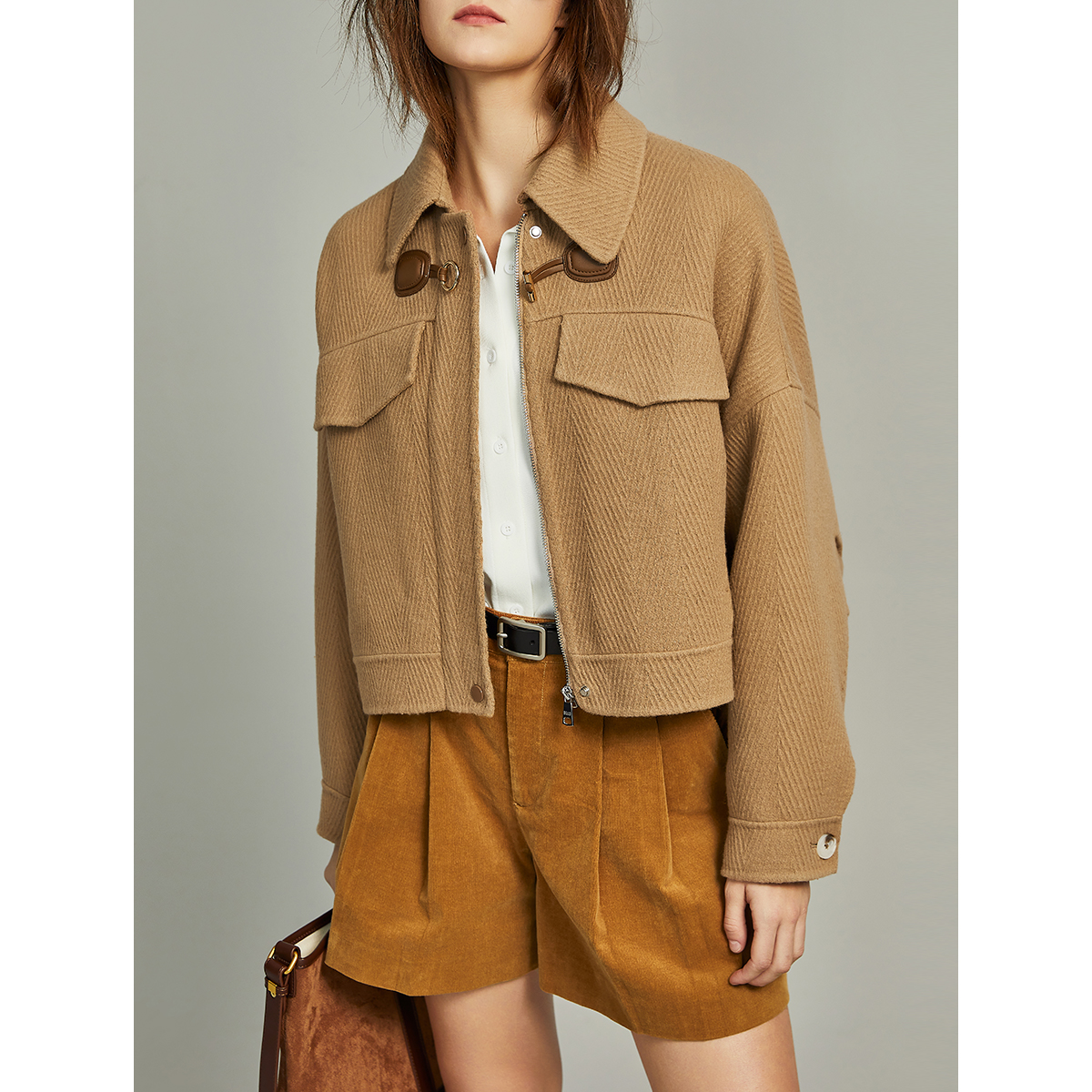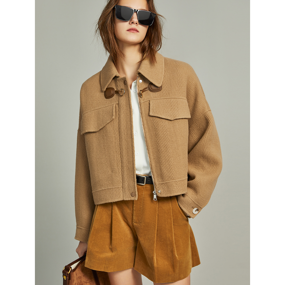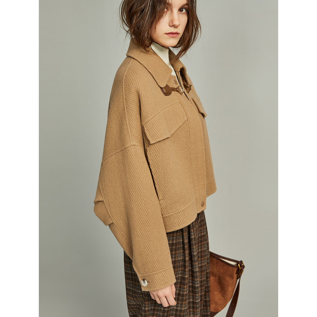 ELLE法式高级感宽松翻领短款毛呢外套女2025冬装新款气质呢子大衣