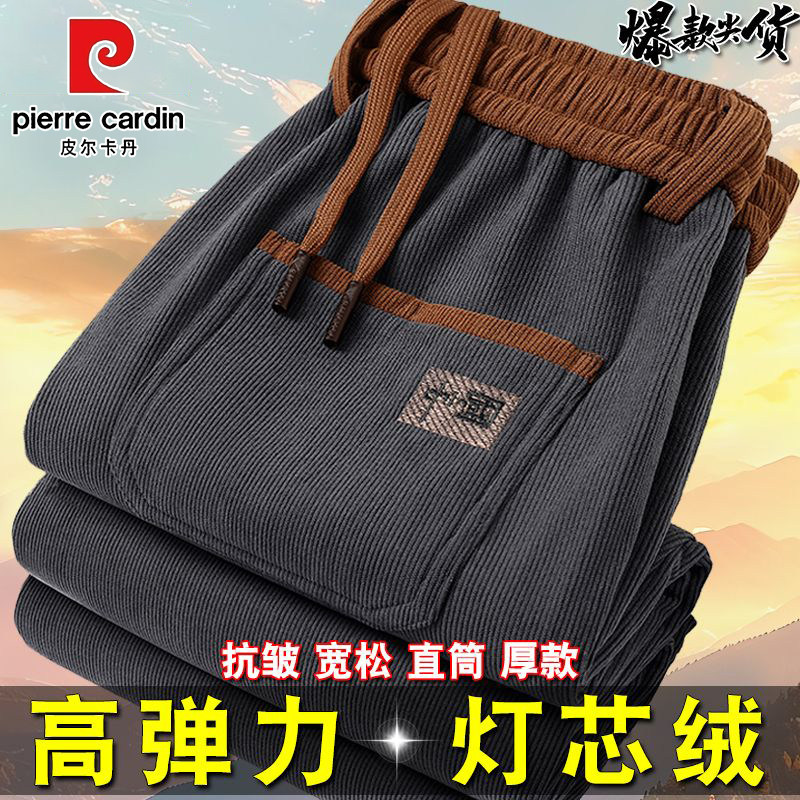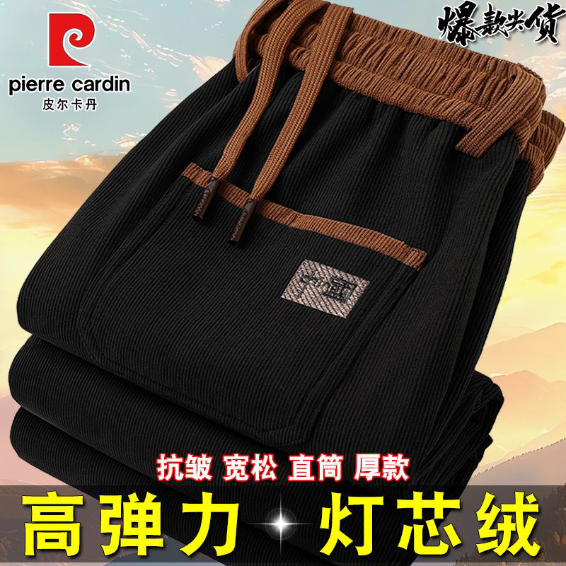 皮尔卡丹秋冬加绒加厚灯芯绒休闲裤免烫运动裤松紧腰爸爸装卫裤子