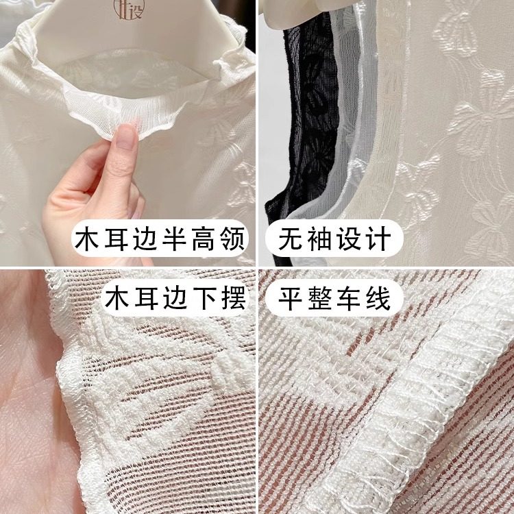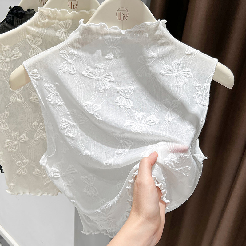 女百搭高档木耳边半高领无袖背心网纱打底衫内搭叠穿蕾丝假领子