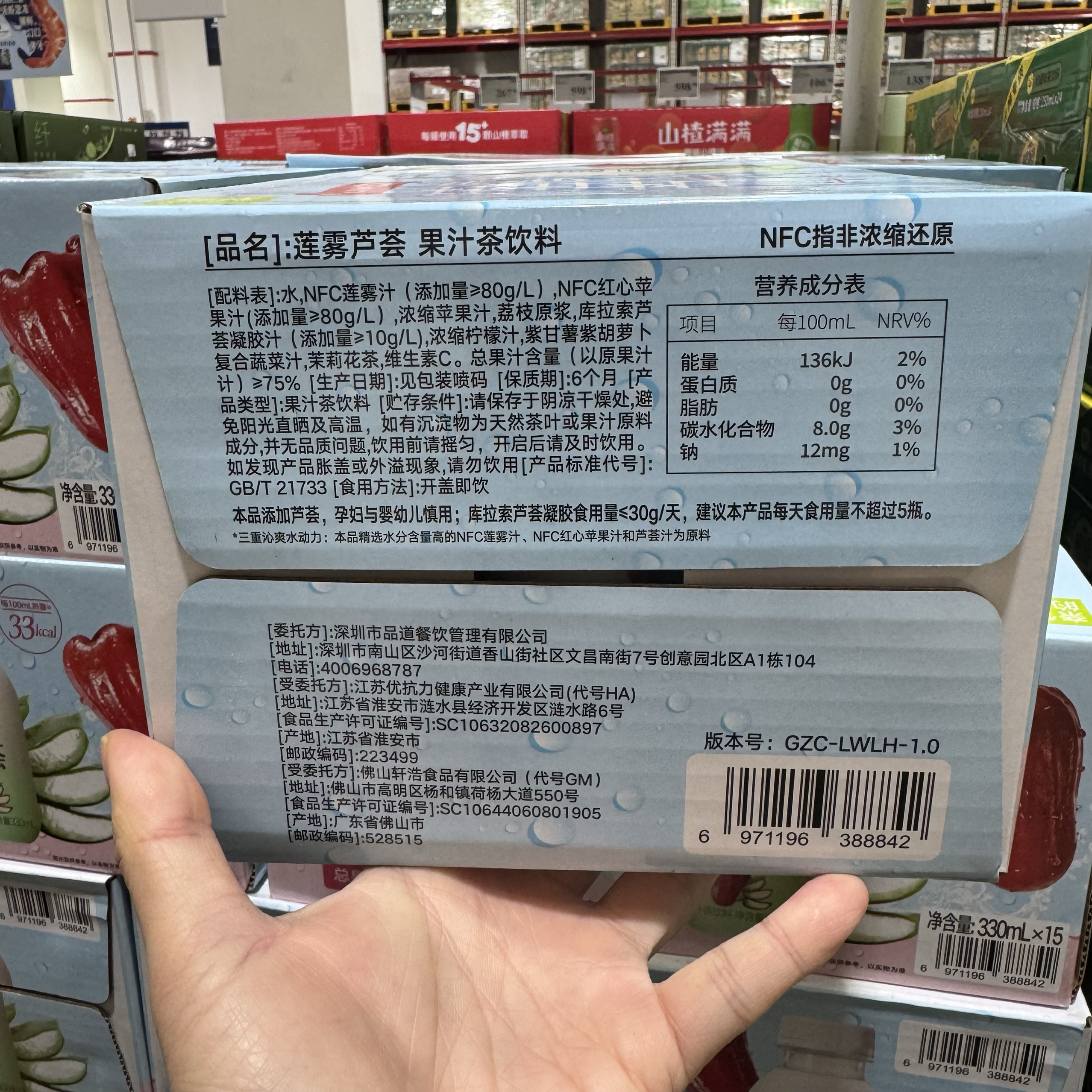 山姆莲雾芦荟 果汁茶饮料 真茶萃取,无菌冷灌工艺